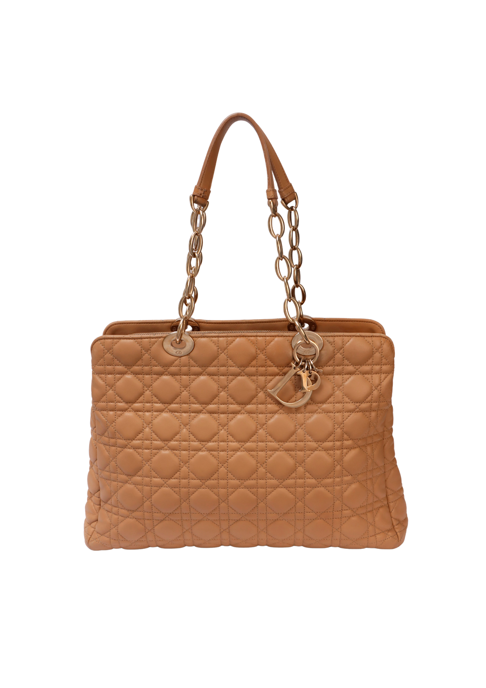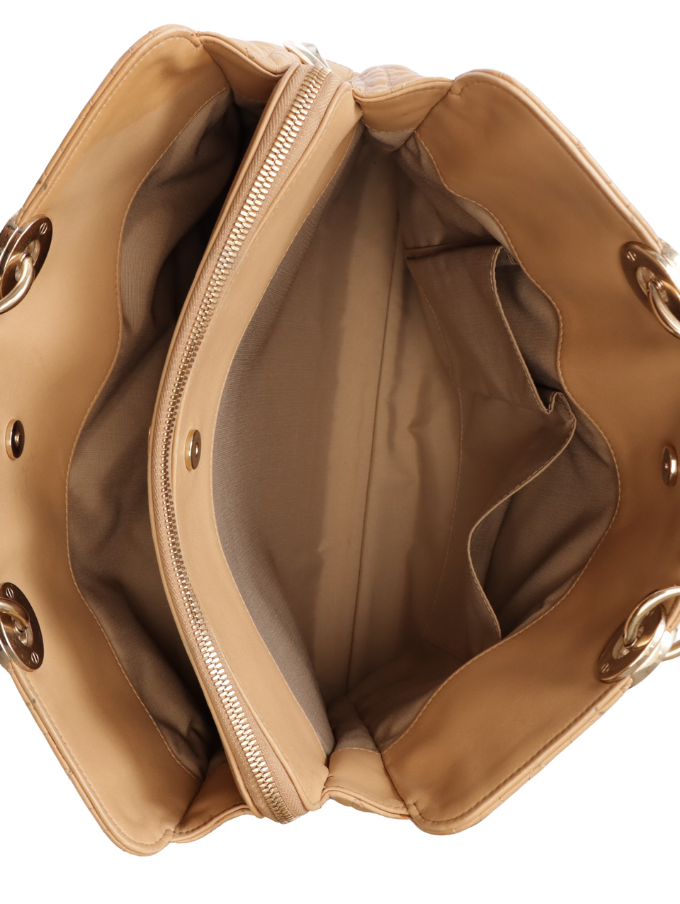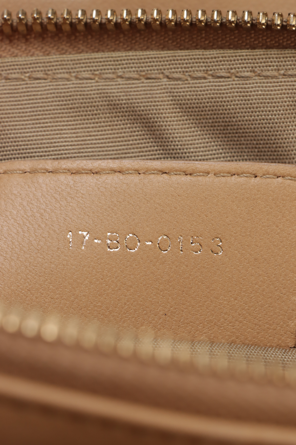 Descrição do Material: Couro lambskin bege com acabamento matelassê cannage