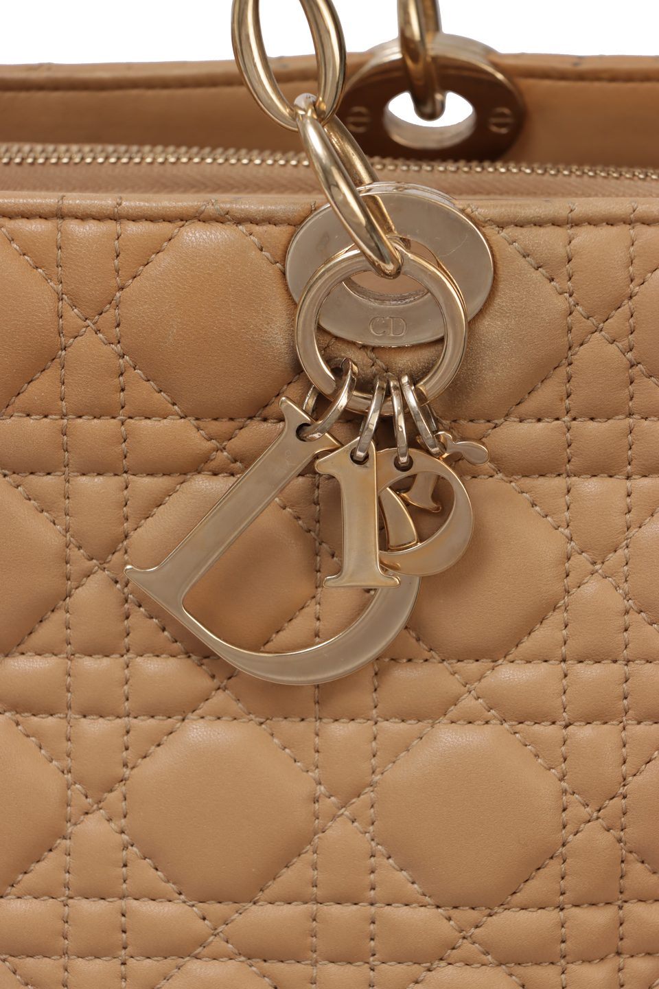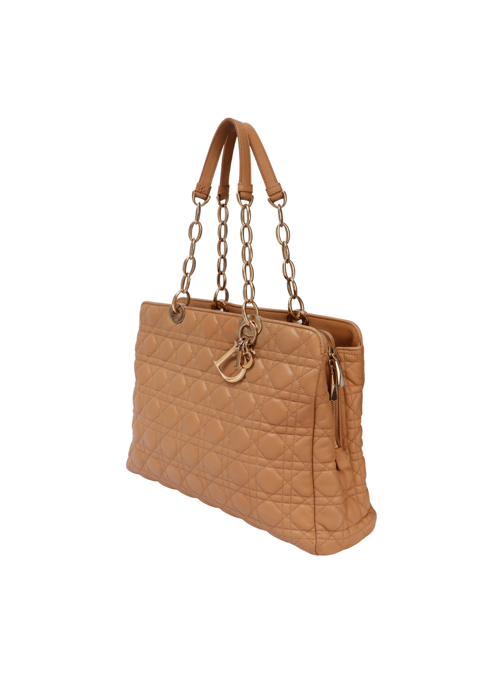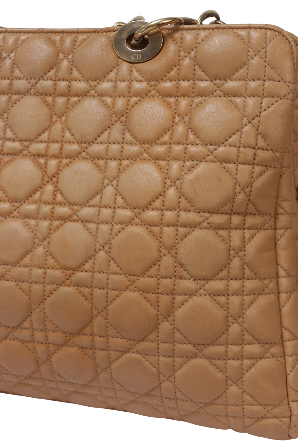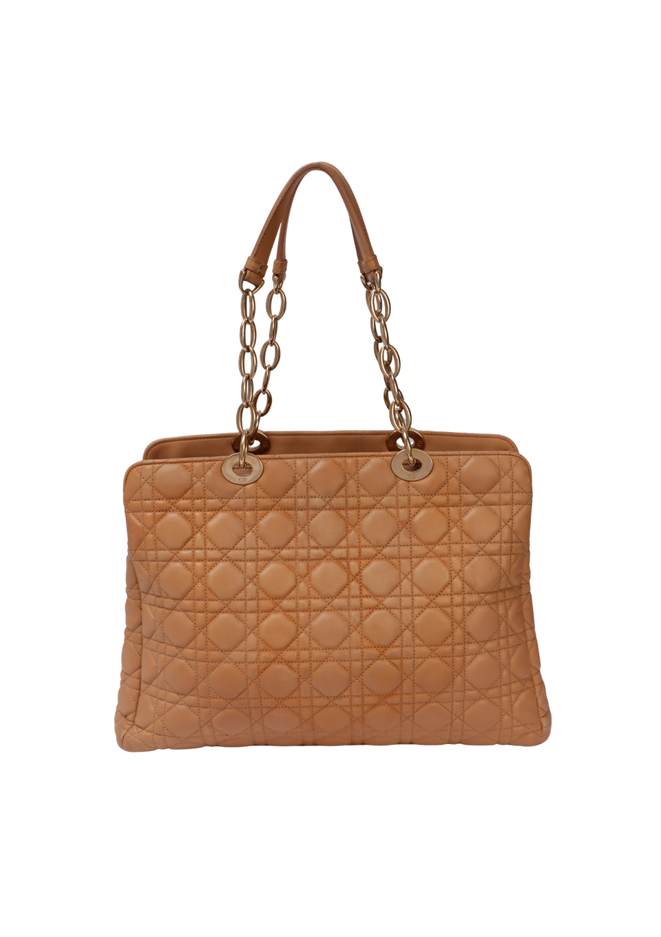 Descrição do Material: Couro lambskin bege com acabamento matelassê cannage
