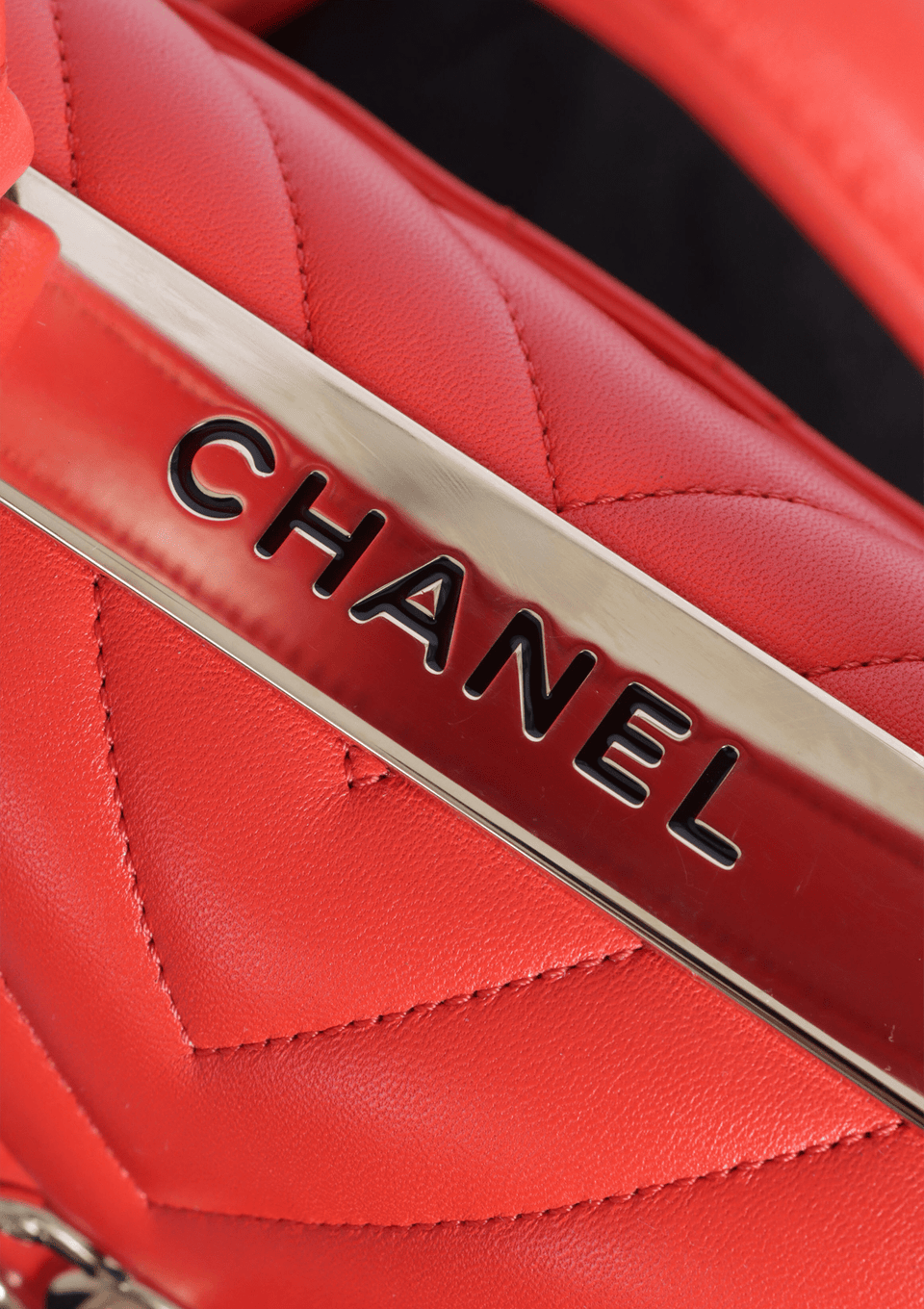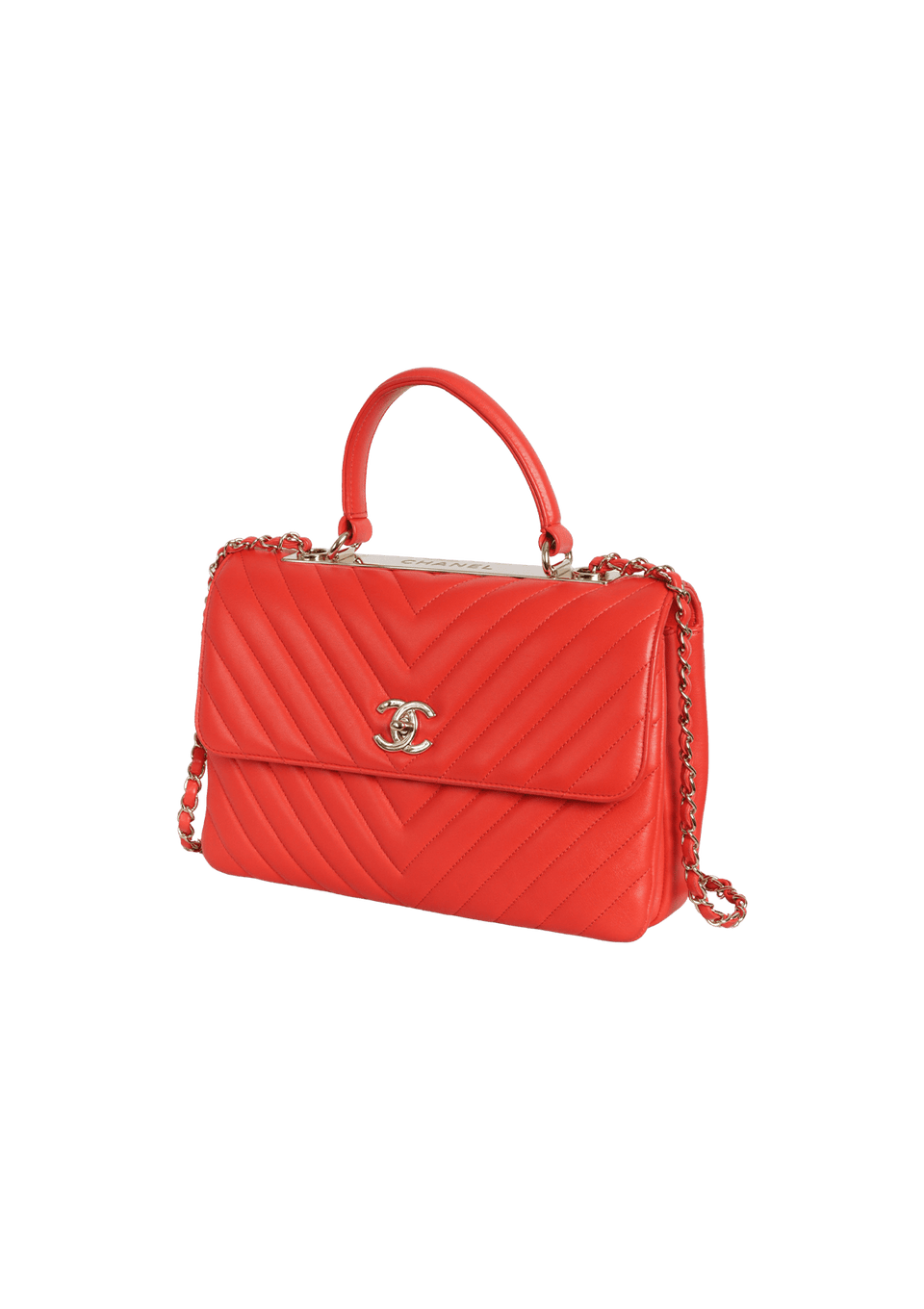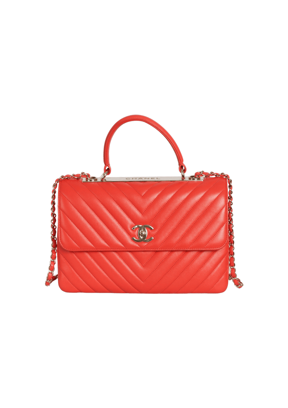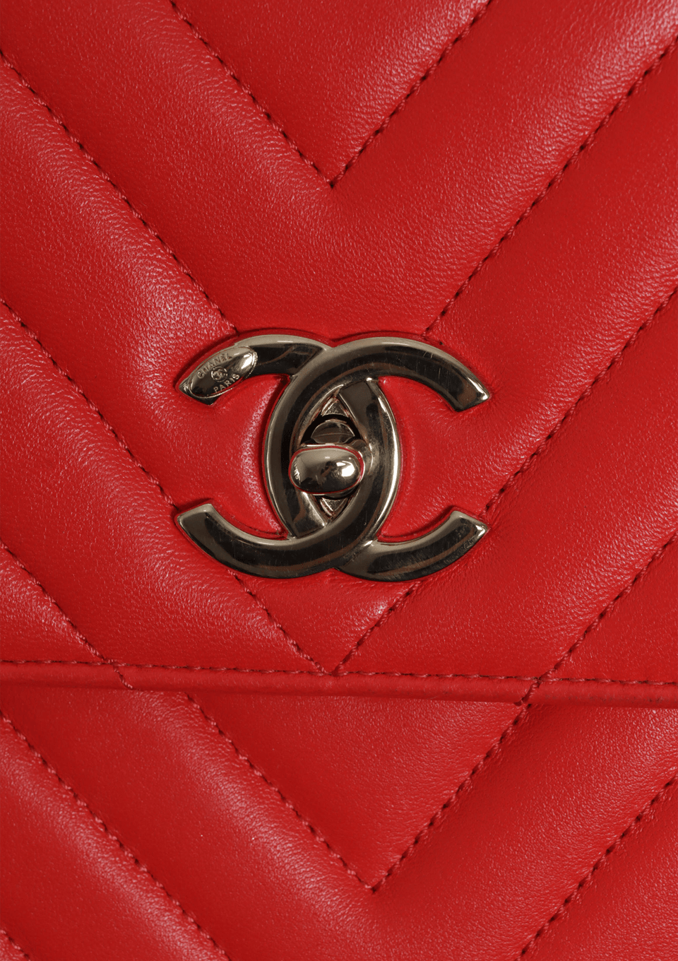 - Couro lambskin vermelho com acabamento matelassê chevron;