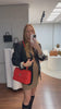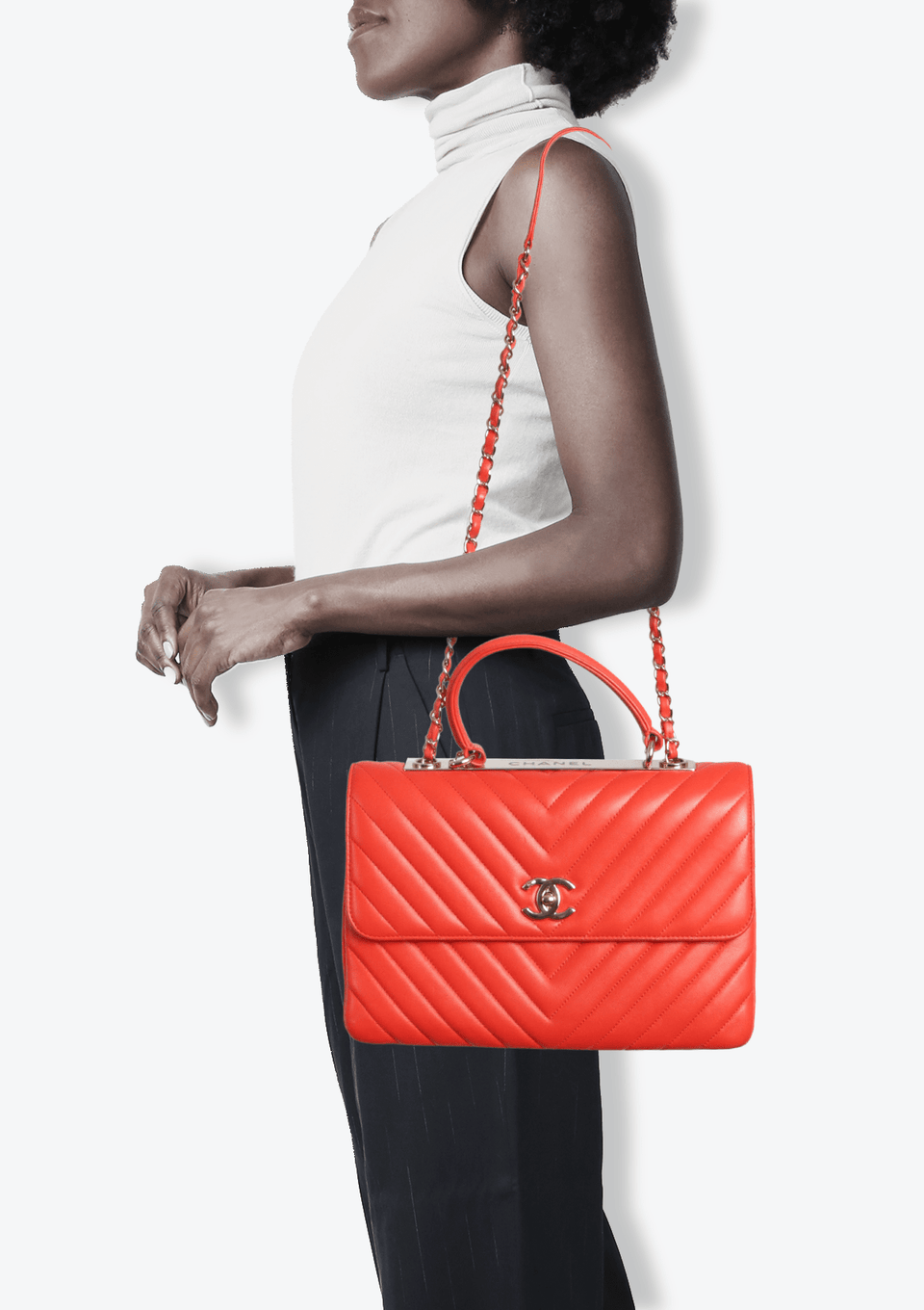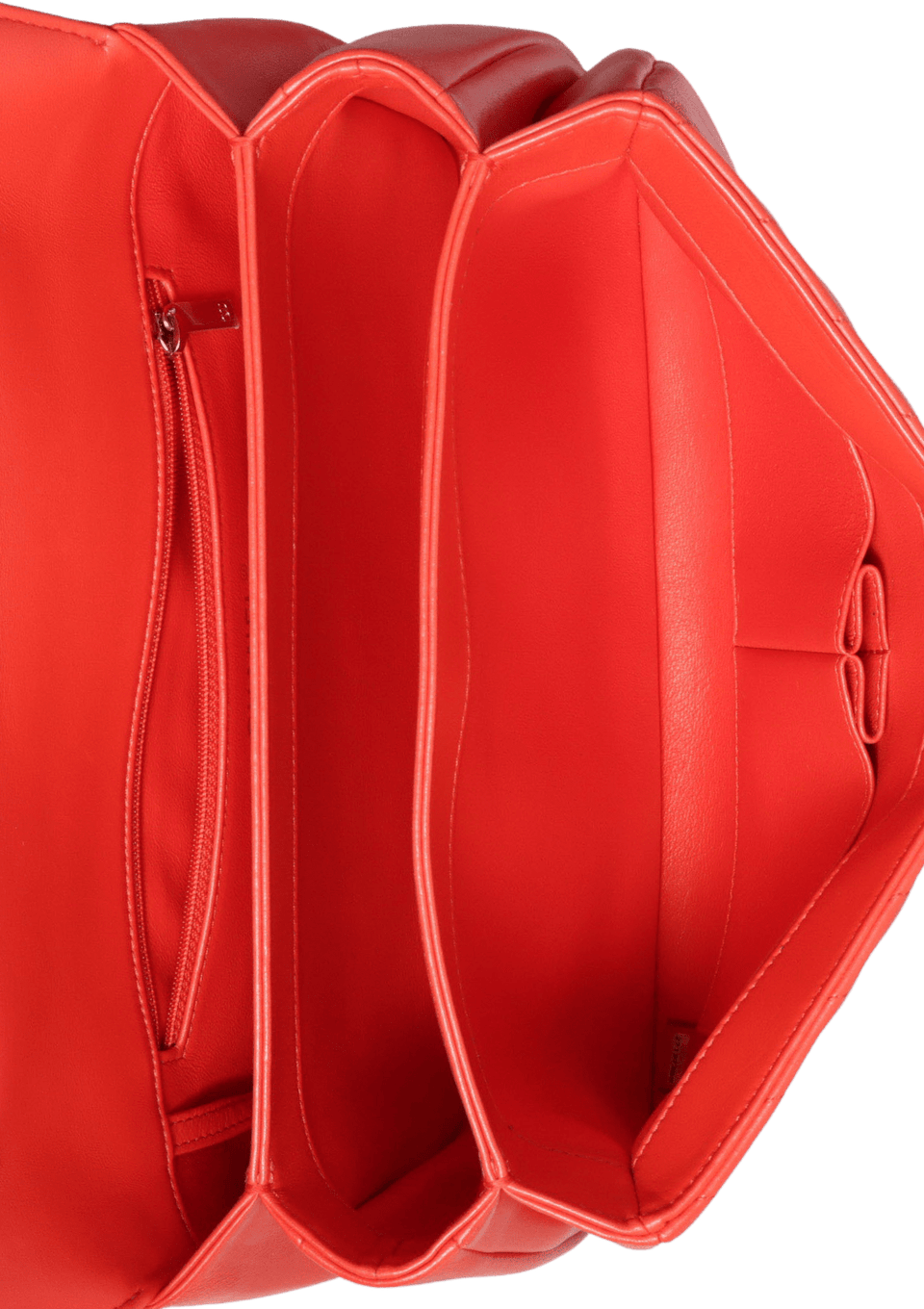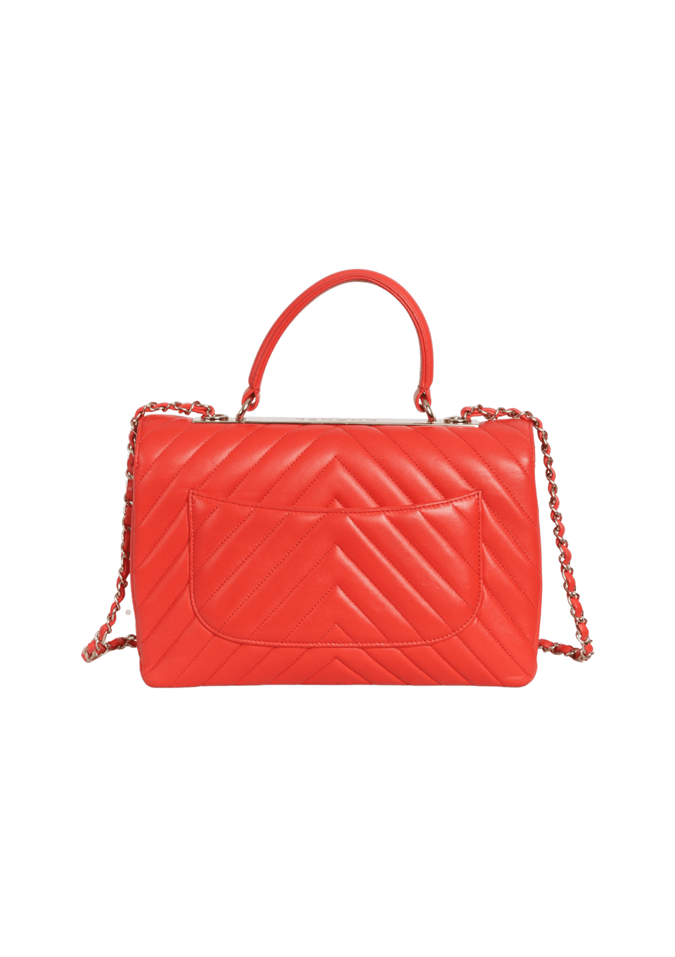- Couro lambskin vermelho com acabamento matelassê chevron;