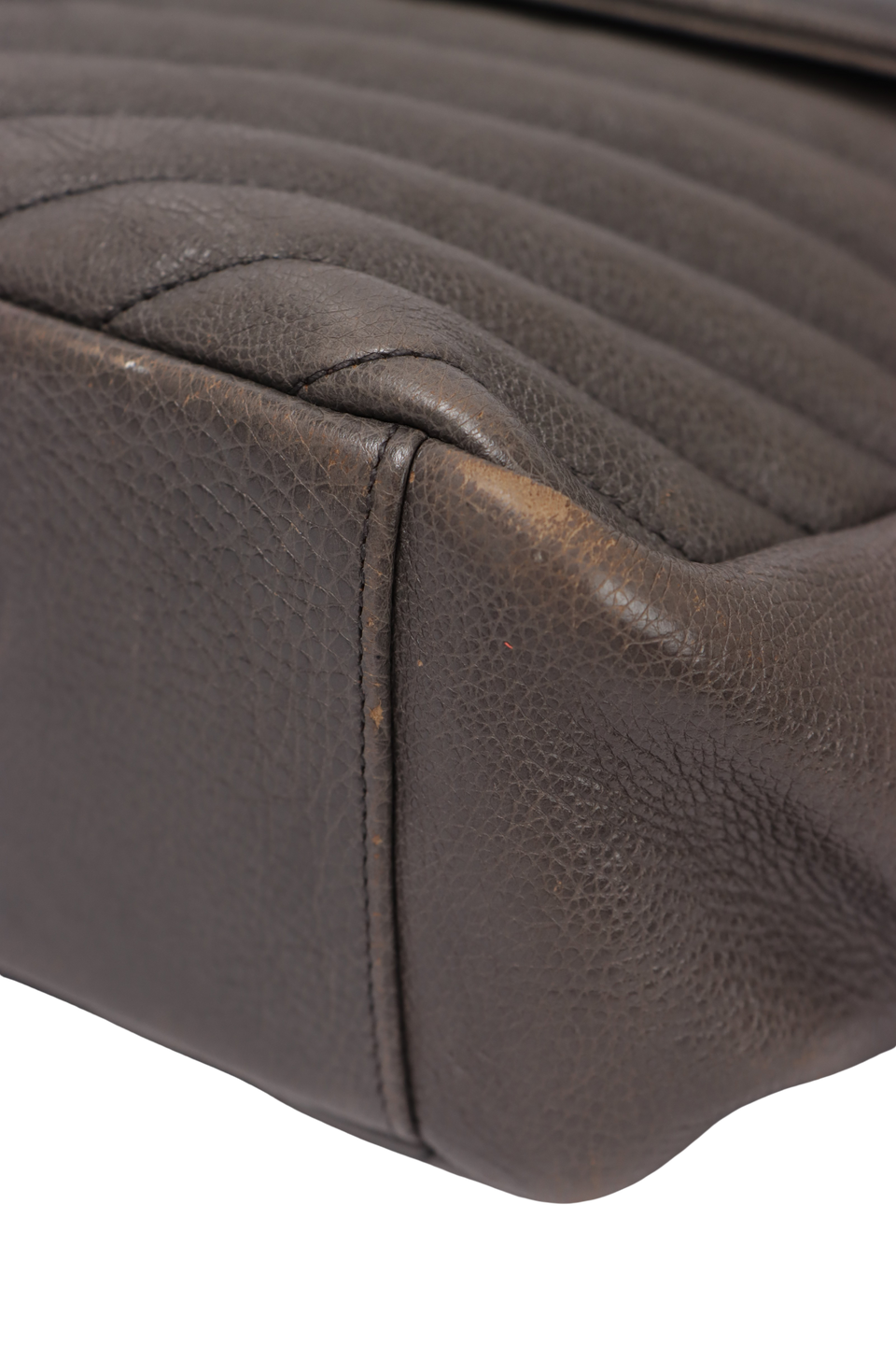 Regular. Apresenta severos desgastes, manchas esbranquiçadas e marcas de uso pelo couro, principalmente nas extremidades laterais da aba, cantos da base, parte central da base e parte superior de trás, notáveis deformidades pela estrutura, especialmente nas partes inferiores das laterais, consideráveis oxidações, marcas de uso e descolorações nas ferragens da logomarca frontal e nos detalhes superiores, severas fissuras nos acabamentos inferiores da aba na parte de trás, notáveis manchas e marcas de uso pela parte interna.