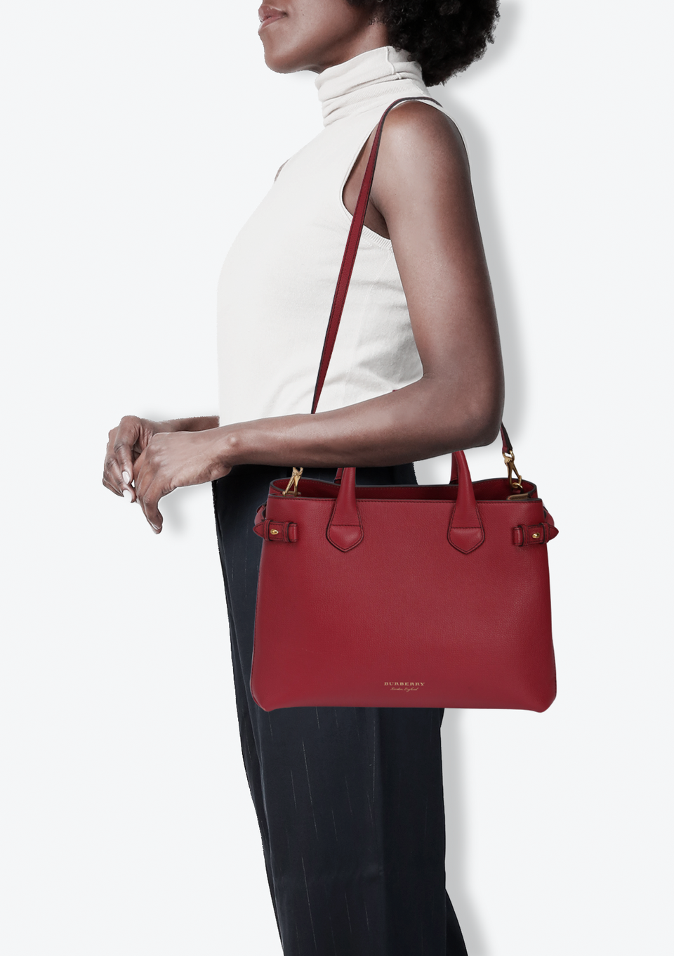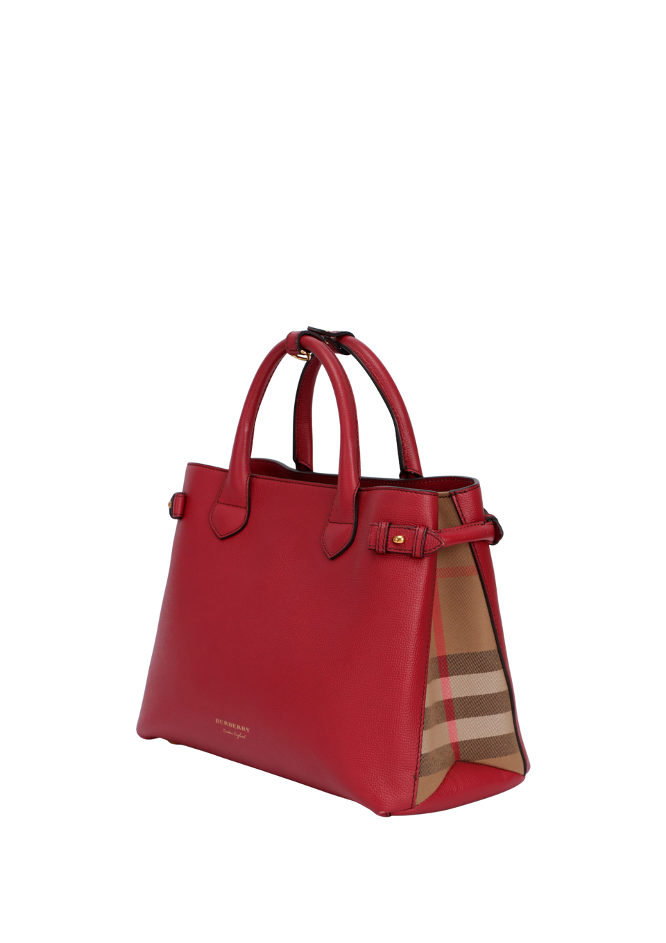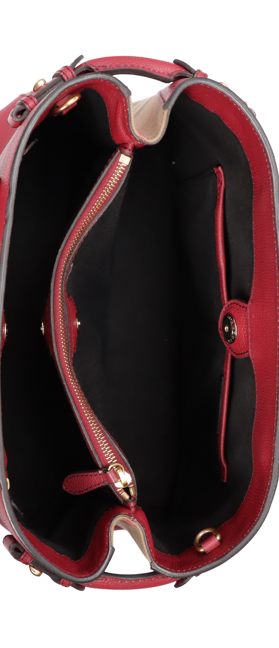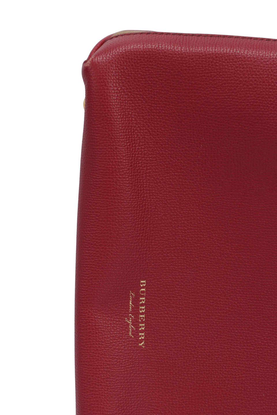 Descrição do Material: Couro calfskin vermelho com detalhes em canvas House Check