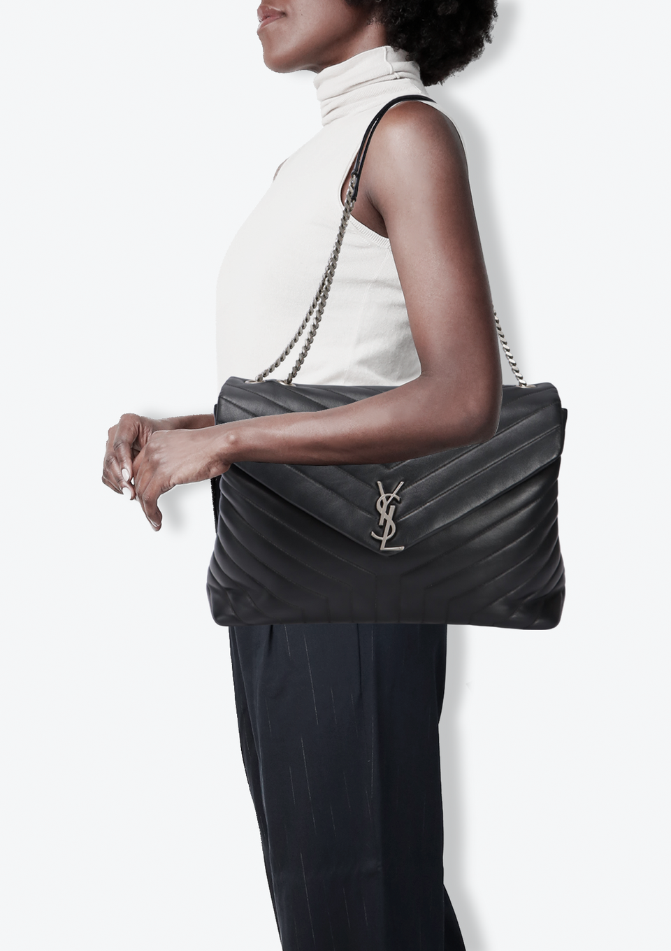 Descrição do Material: Couro calfskin preto com acabamento matelassê