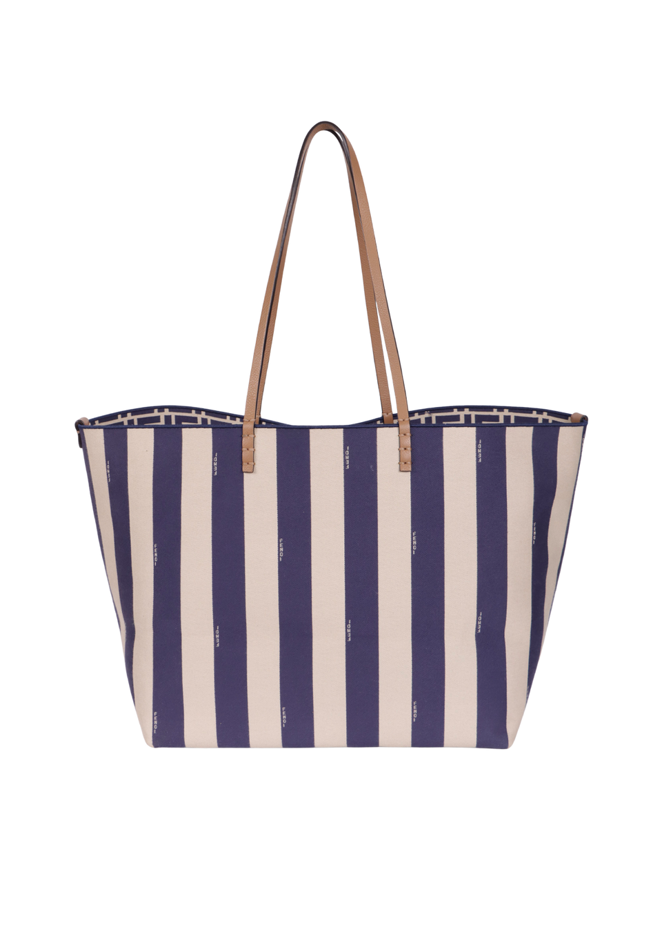 Descrição do Material: Canvas Pequin azul e bege com detalhes em couro calfskin bege