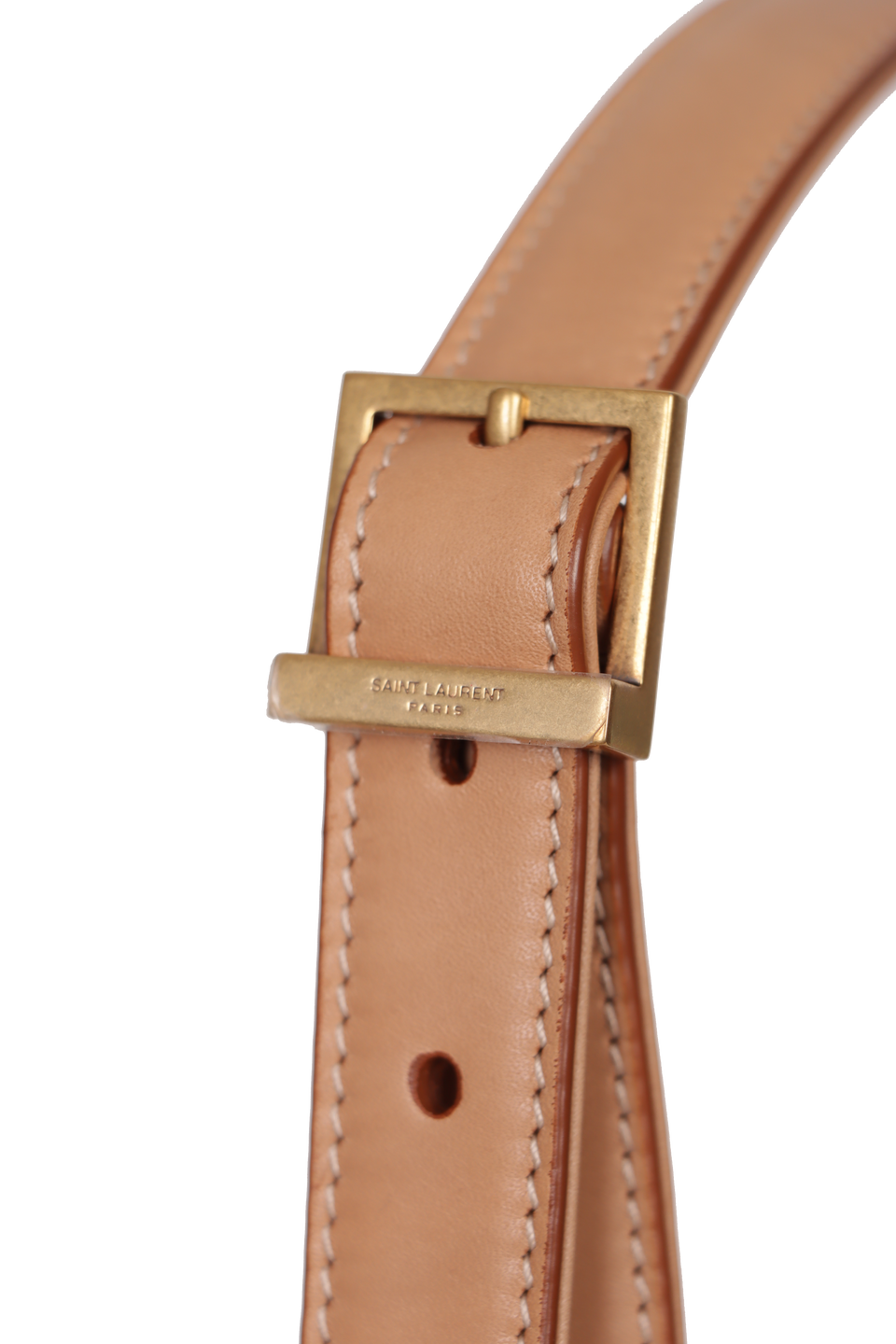 Bom, com aparência de usado. Apresenta leves marcas de uso pelo couro, especialmente do lado esquerdo frontal, nas laterais da base e na parte inferior do lado direito de trás, pequenas marcas de uso nas ferragens do fecho e na fivela da alça e leves marcas de uso pelo forro.