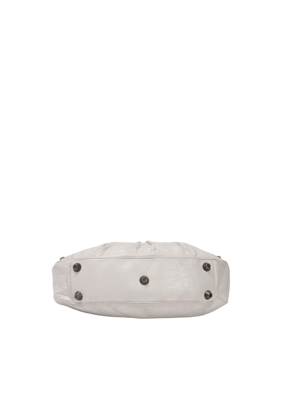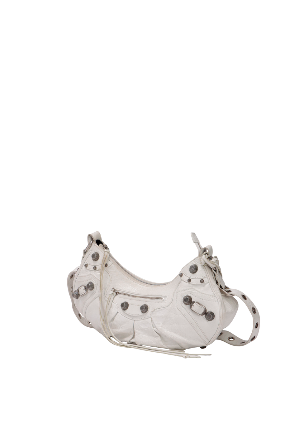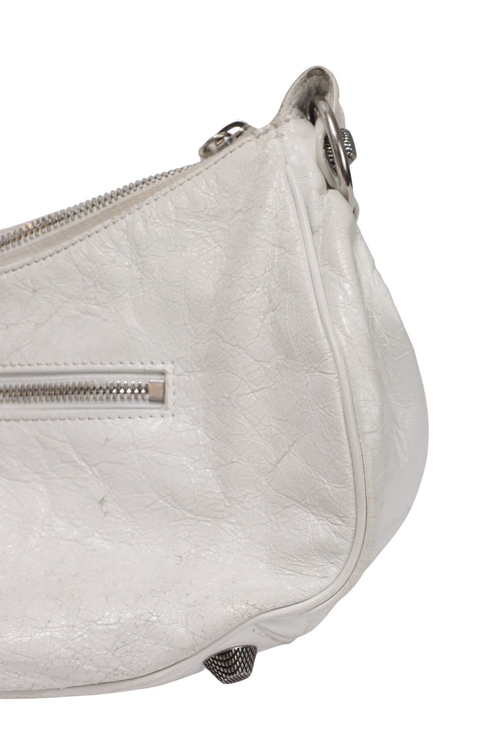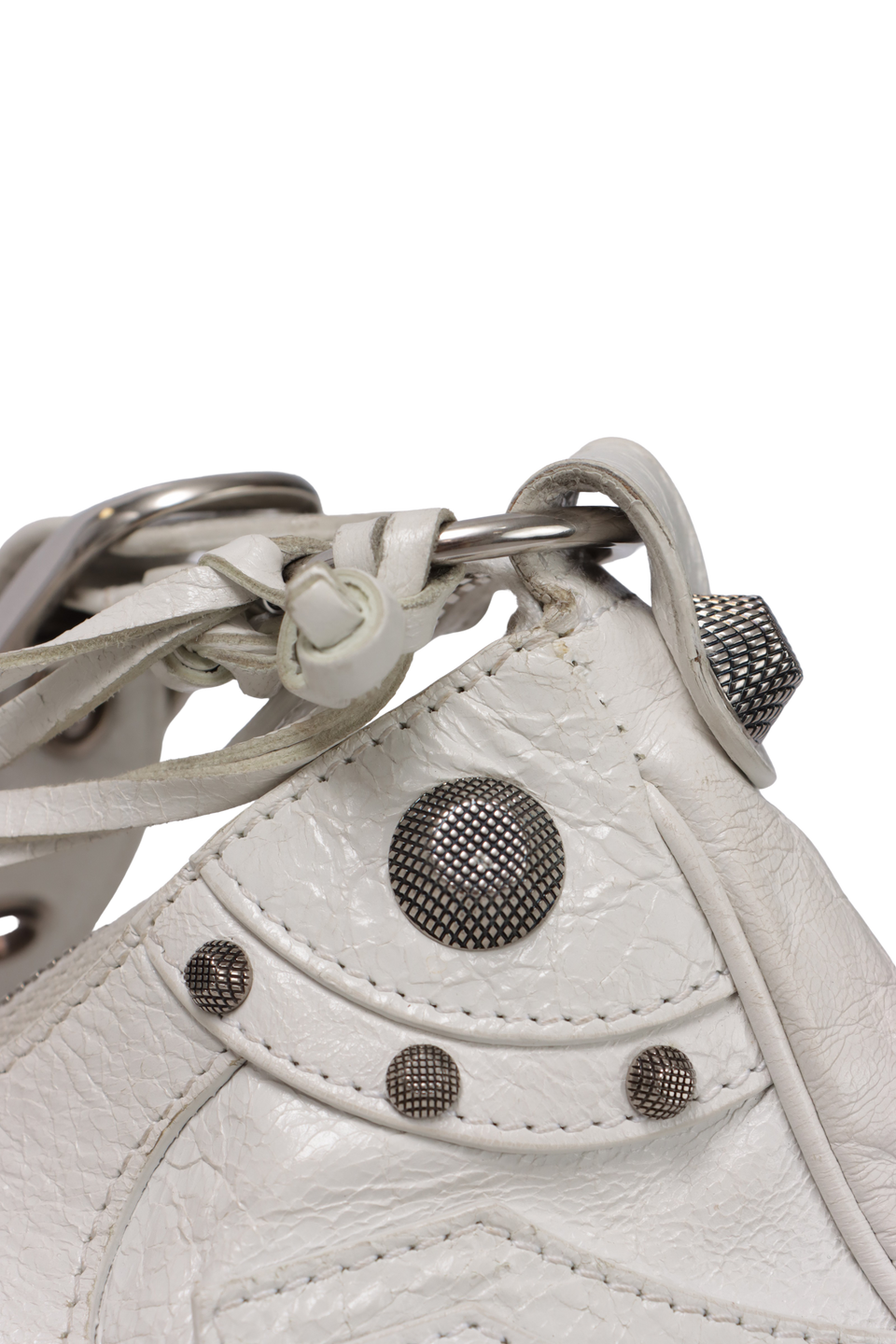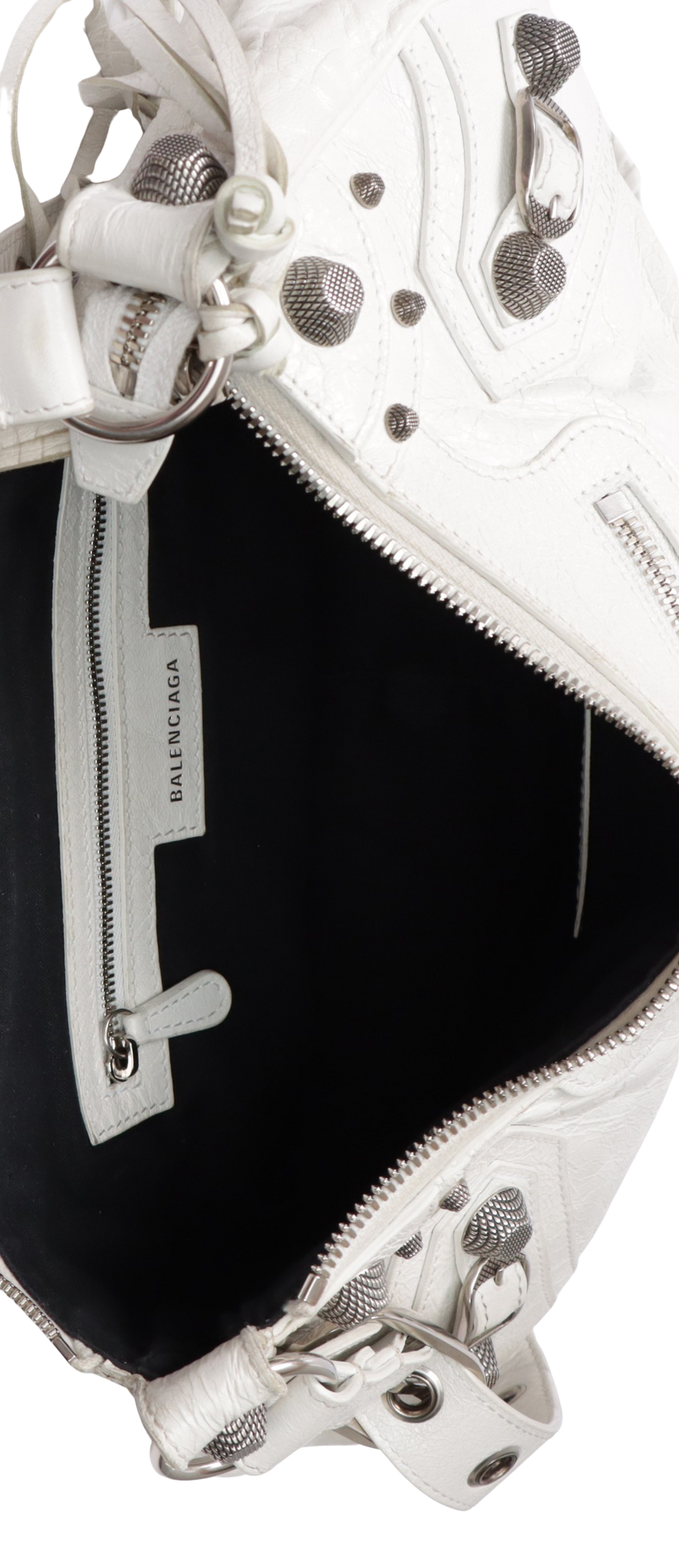 Bom, com aparência de usado. Apresenta pequenos desgastes, marcas de uso e manchas escurecidas pelo couro, especialmente na parte inferior do lado direito e nos acabamentos, leve deformação na parte inferior de trás, nas extremidades da parte central da alça e entre os pontos de ajuste de ambas as laterais, pequenas fissuras e desgastes pelas selagens dos acabamentos superiores laterais, pequenas marcas de uso pelas ferragens e pelo espelho, leves manchas esbranquiçadas e puídos pelo forro. O couro apresenta nervuras características do design original