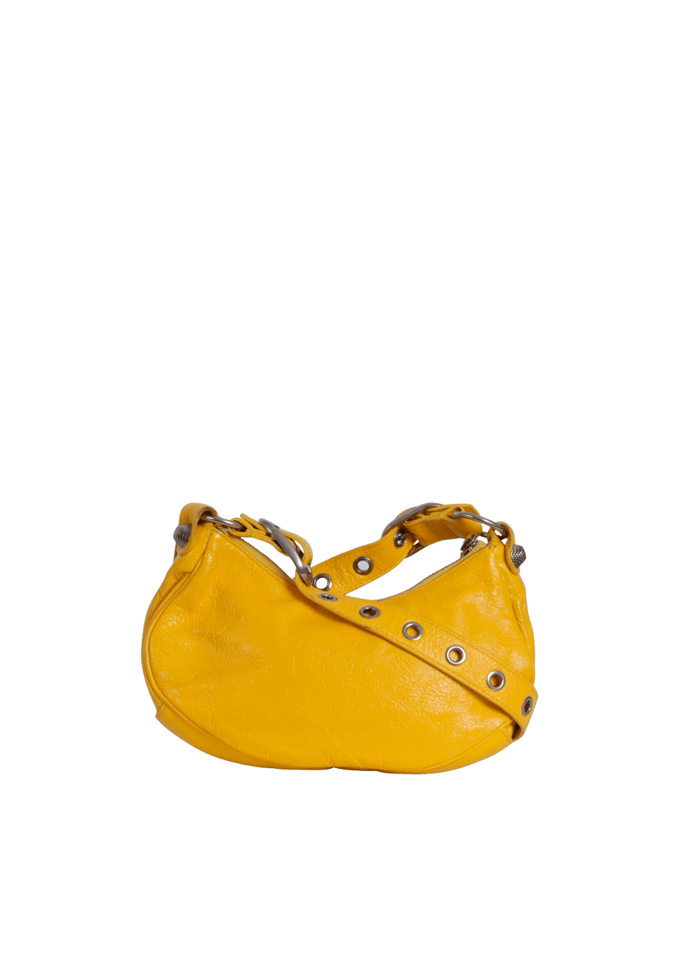 Condição: Bom, com aparência de usado. Apresenta leves fissuras nos acabamentos da alça, leves manchas escurecidas nas selagens da alça, leves desgastes nas ferragens, pequenas manchas escurecidas na parte frontal e na base e leves marcas de uso no forro.