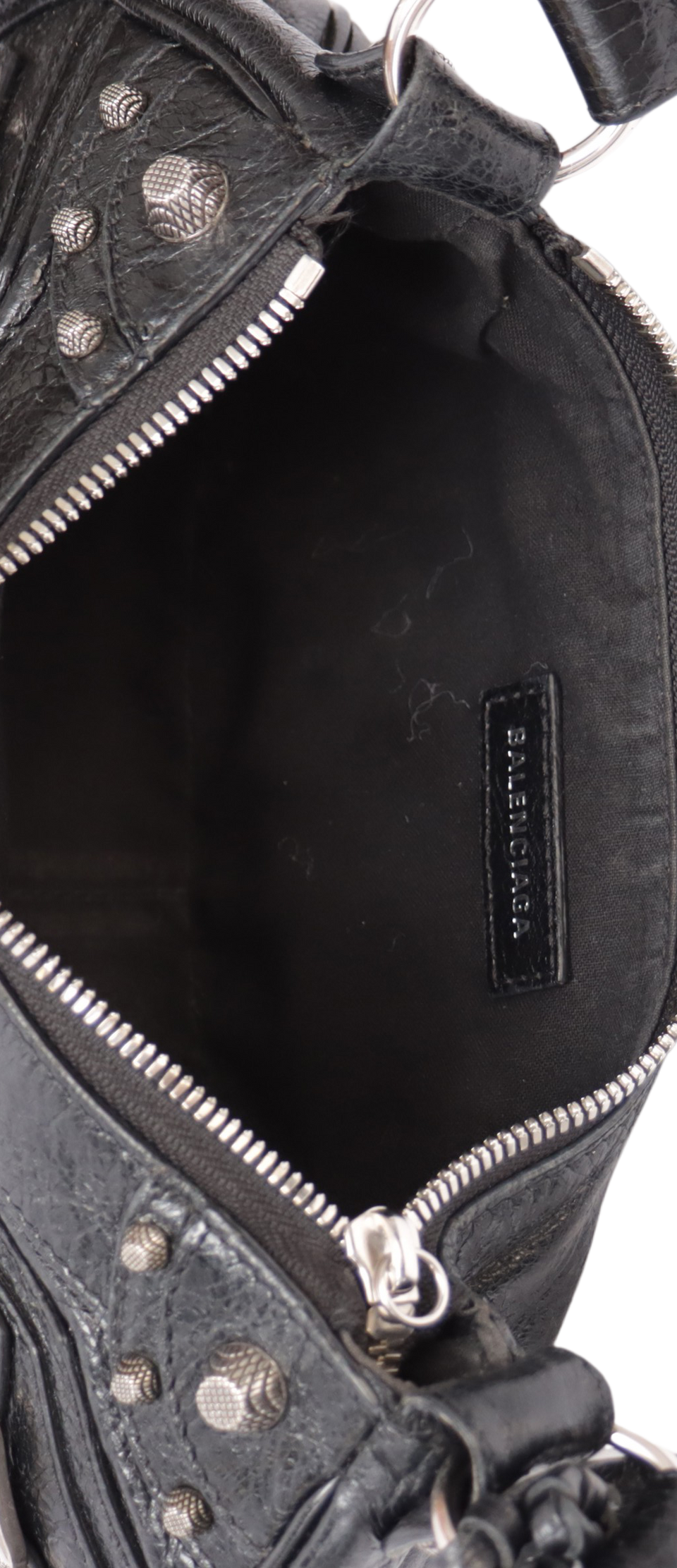 Bom, com aparência de usado. Apresenta ausência de tiras de couro do puxador do cursor, leves desgastes pelo couro, principalmente do lado esquerdo superior frontal e canto esquerdo da base, pequenas aberturas e fissuras nas selagens dos detalhes superiores laterais, leve deformidade na estrutura da tira de couro da alça, pequenas marcas de uso e oxidações nas ferragens e leves manchas de uso no forro.