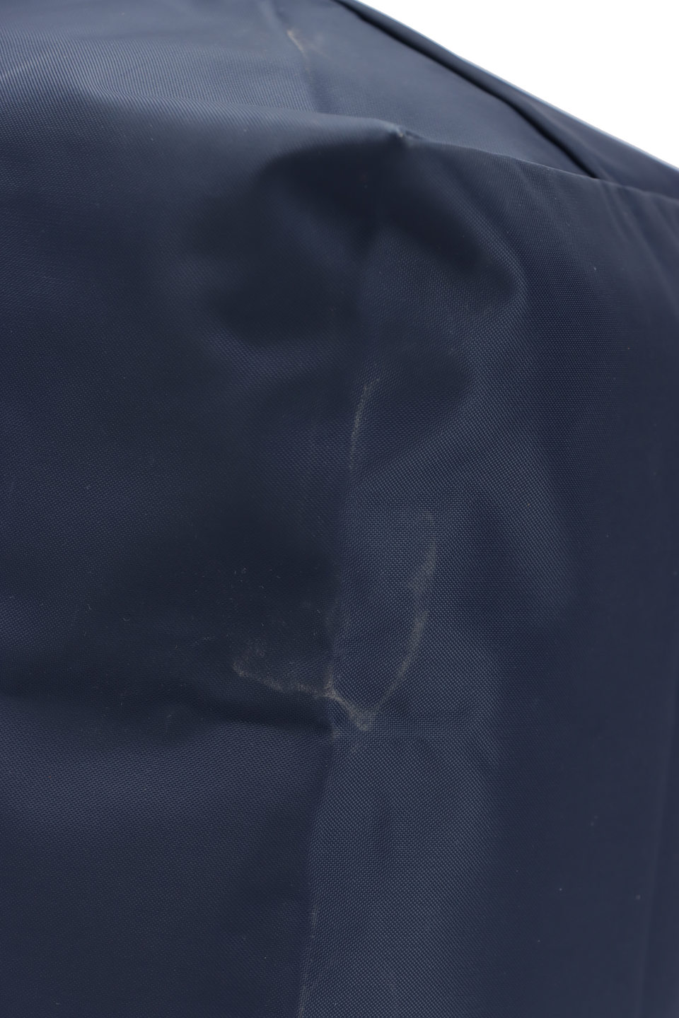 Bom, com aparência de usado. Apresenta leves manchas esbranquiçadas, marcas de uso e desgastes pelo nylon, especialmente na parte inferior central frontal, cantos da base e na parte inferior de trás, pequenas manchas escurecidas e marcas de uso nos detalhes em couro da aba e nas partes centrais das alças, leves marcas de uso nas ferragens do detalhe frontal e no puxador do cursor, pequenos desgastes nas selagens das alças e leves manchas esbranquiçadas pela parte interna.
