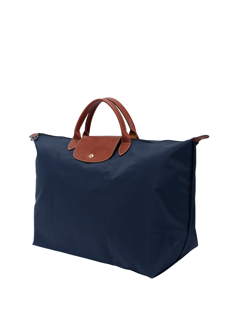 Descrição do Material: Nylon azul com detalhes em couro bovino com acabamento russian