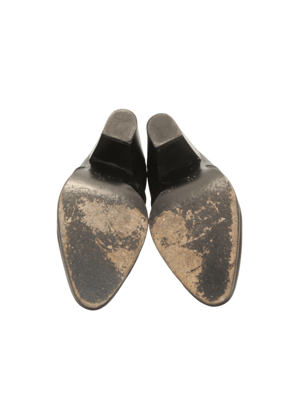 Condição: Bom, com aparência de usado. Apresenta desgastes nas solas, marcas e pequenos riscos de uso pelo couro da parte externa e palmilhas. Parte interna passou por reparo nas palmilhas.