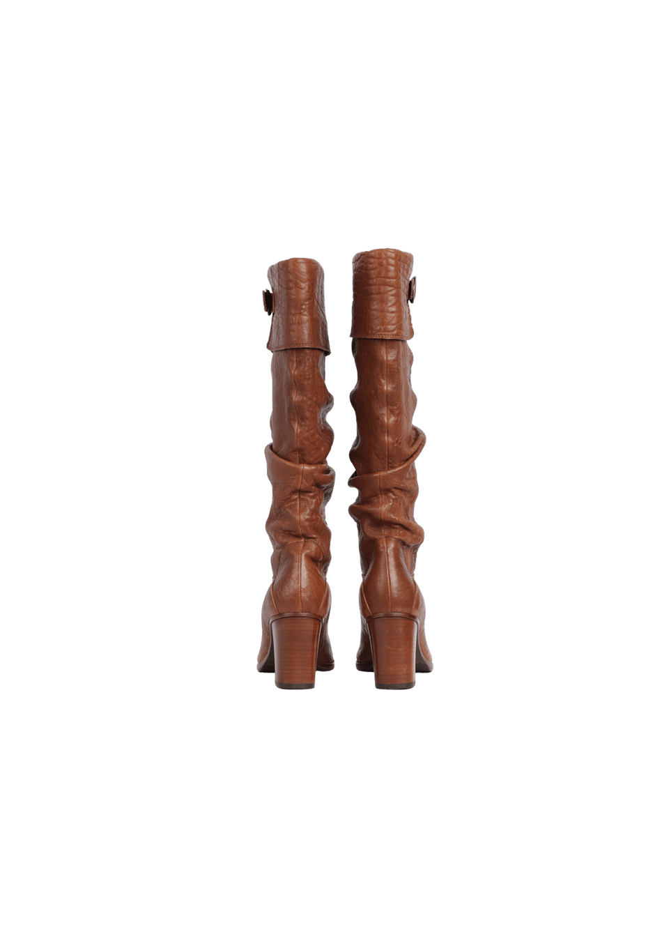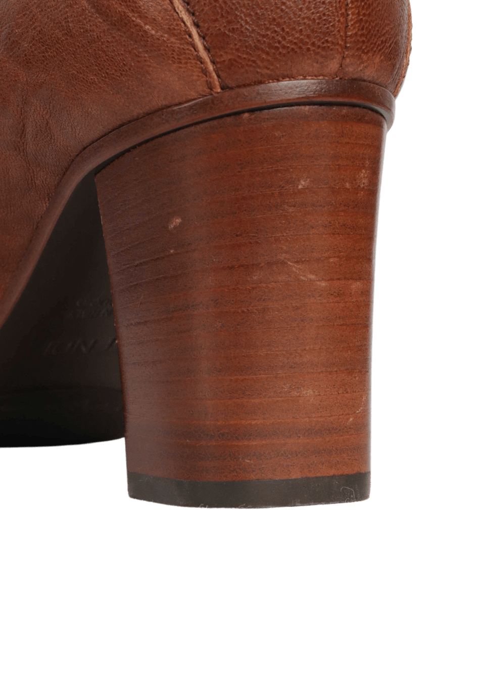 Condição: Bom, com aparência de usado. Apresenta pequenos desgastes e riscos nos saltos, manchas oxidadas e riscos nas ferragens, leves manchas e desgastes nas solas, leves desgastes e desbotamentos pelo couro externo e leves desgastes pelo couro interno. Dust bag da marca apresenta descosturas, desgastes e fios puxados.