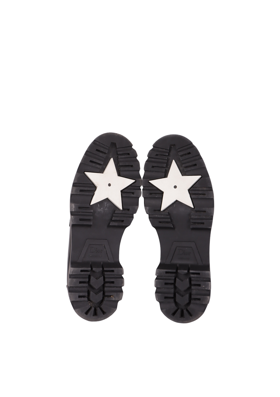 Bom, com aparência de usado. Apresenta leves marcas de uso e manchas esbranquiçadas pelo couro, especialmente nas partes superiores frontais e nas laterais das partes internas de ambos os pés, pequenas marcas de uso nas ferragens dos detalhes superiores, sola levemente usada e pequenas marcas de uso e manchas esbranquiçadas pela palmilha.