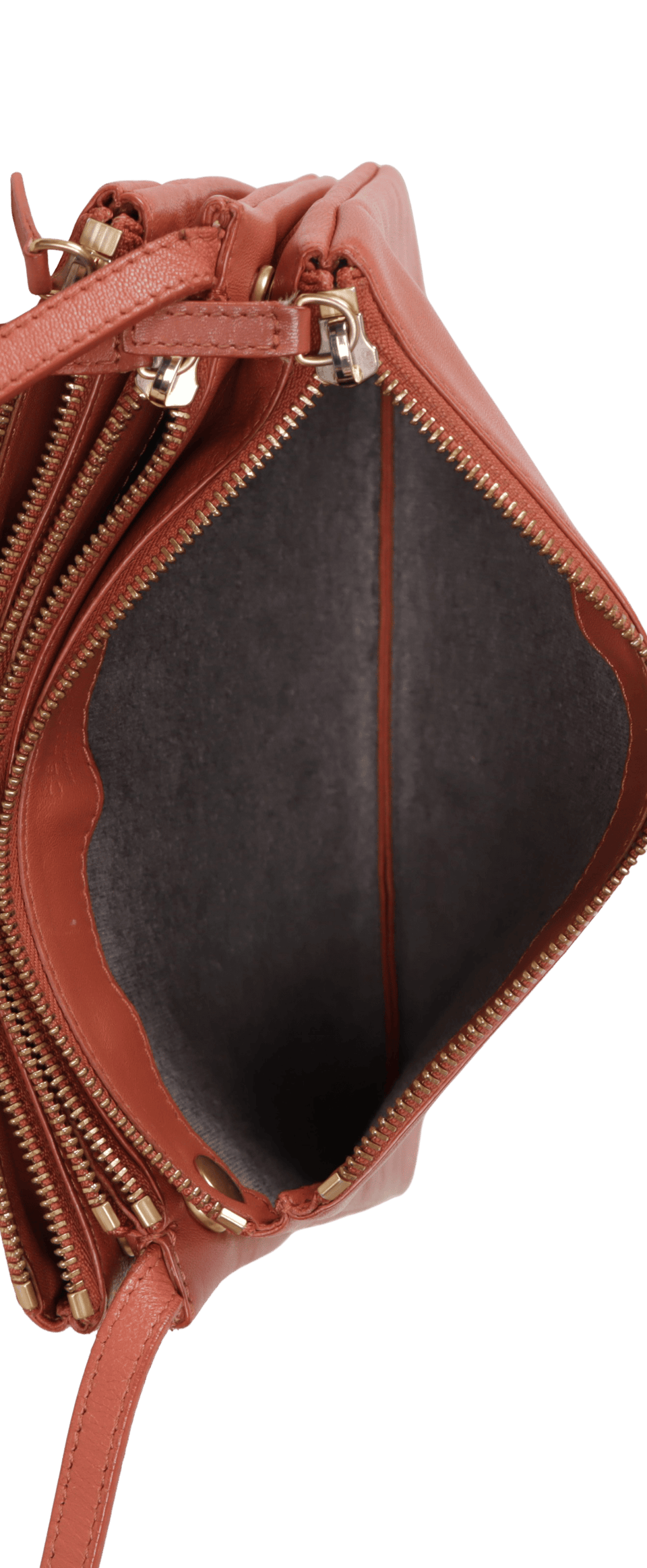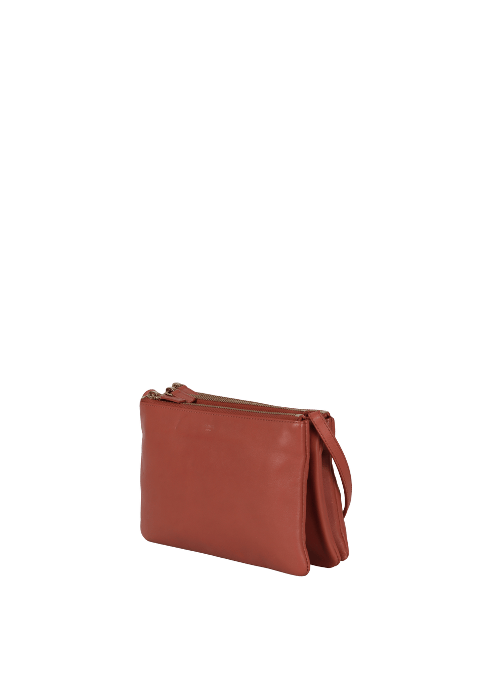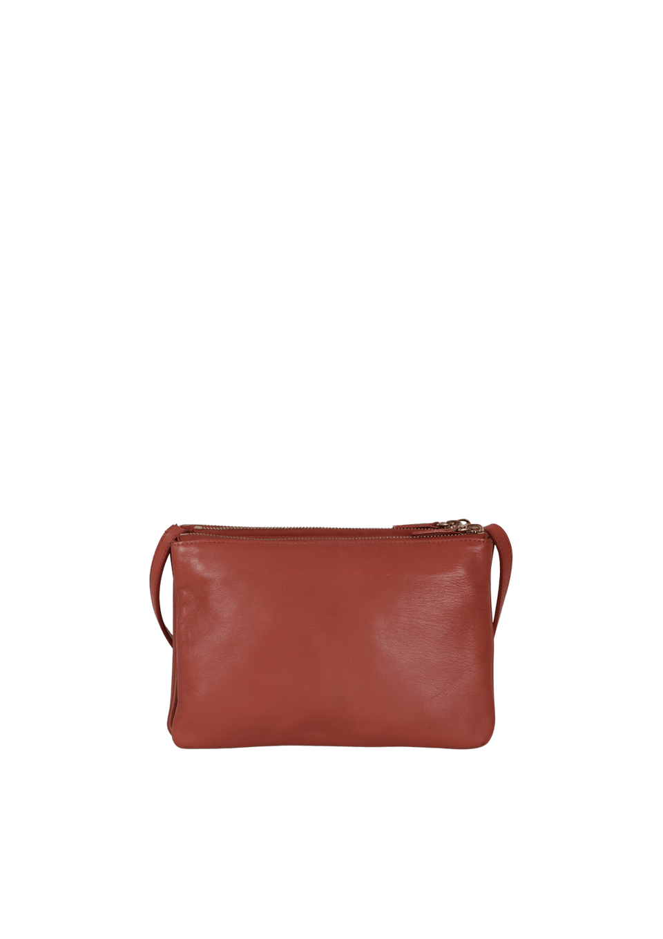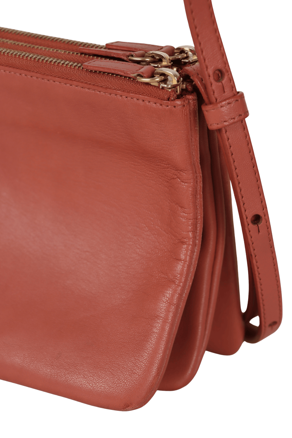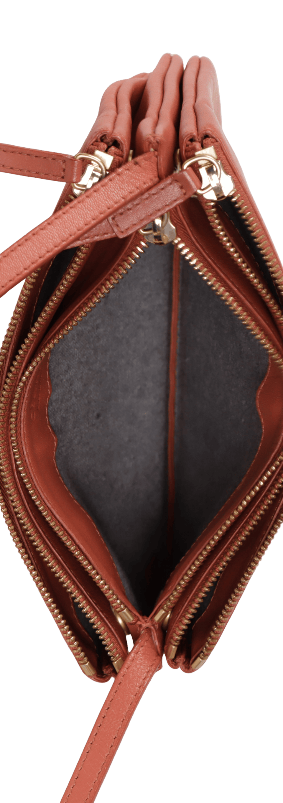 Regular. Apresenta severos desgastes, manchas e marcas de uso pelo couro, especialmente nos cantos da base, na parte superior frontal e parte inferior de trás, consideráveis descolorações e marcas de uso nas ferragens dos puxadores dos cursores e nos detalhes da alça, notáveis deformidades pela estrutura, principalmente na alça e na parte superior de trás, severas fissuras, aberturas e desgastes nas selagens da alça, nos puxadores dos cursores e nas extremidades superiores e notáveis puídos pelos forros.
