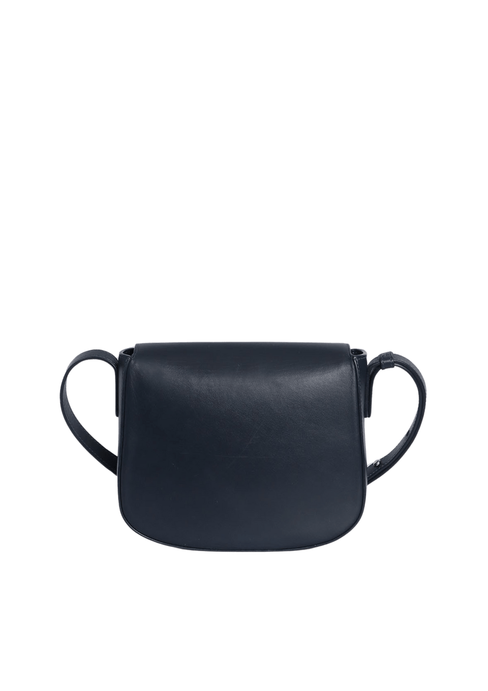 Condição: Bom, com aparência de usado. Apresenta leves desgastes e manchas escurecidas no couro, especialmente da parte frontal e das alças, leves fissuras nas selagens, principalmente da alça e dos acabamentos internos da aba, leves desgastes e descolorações das ferragens e leves marcas de uso no forro.