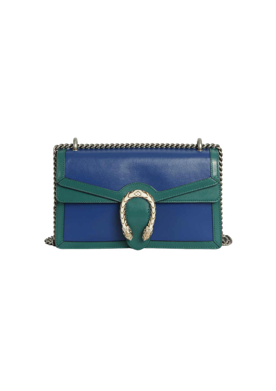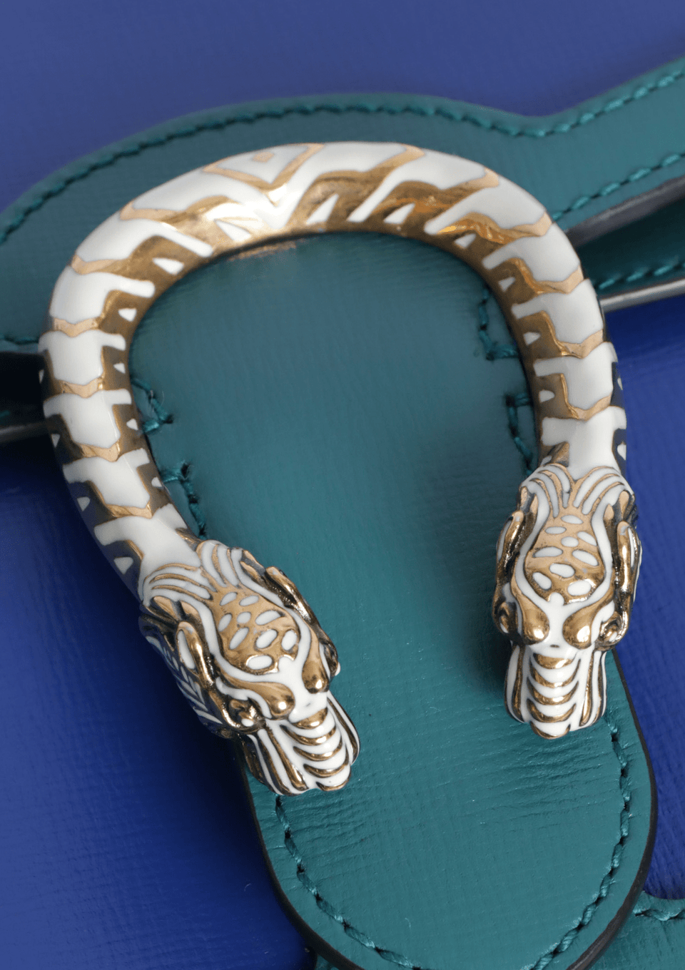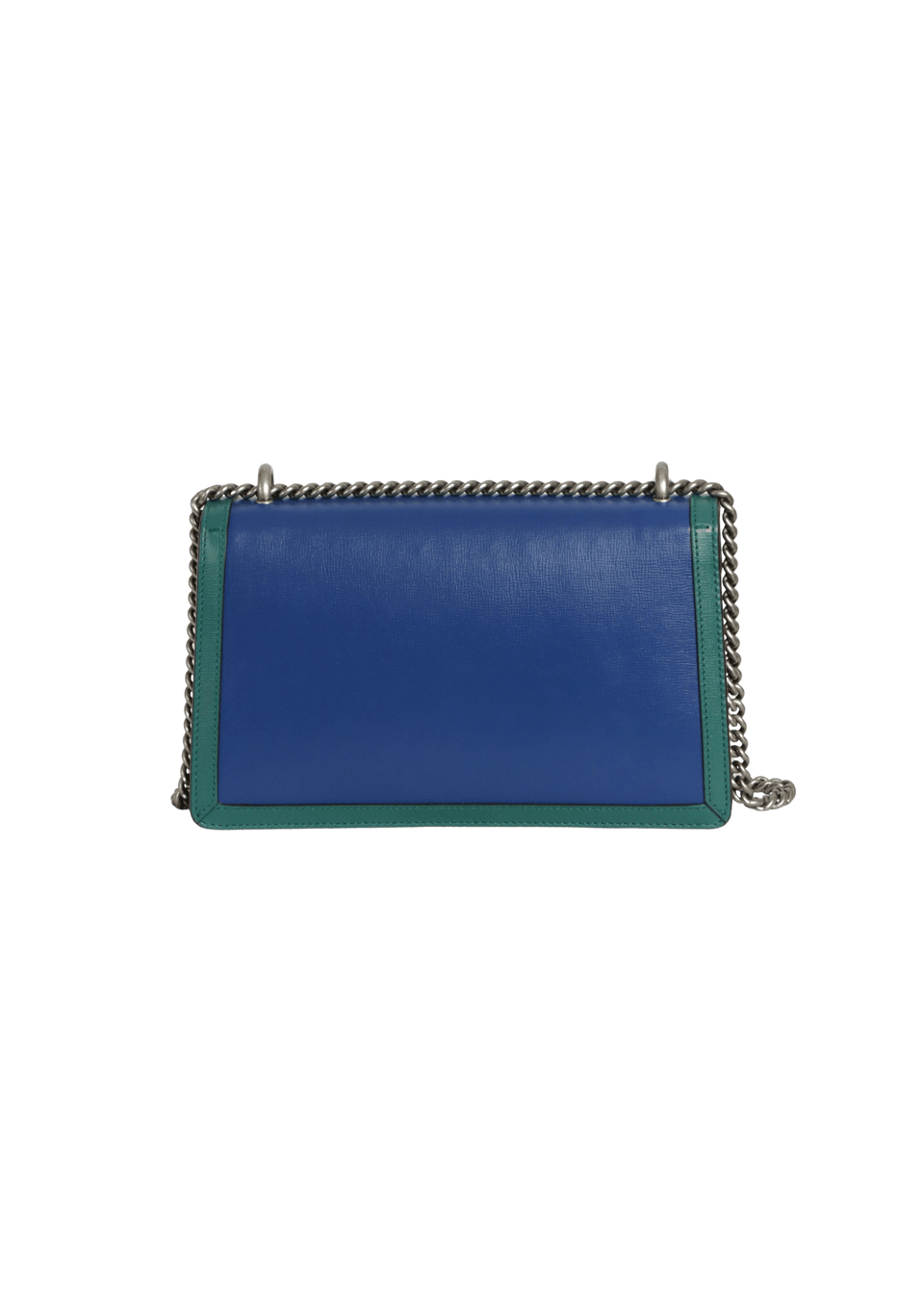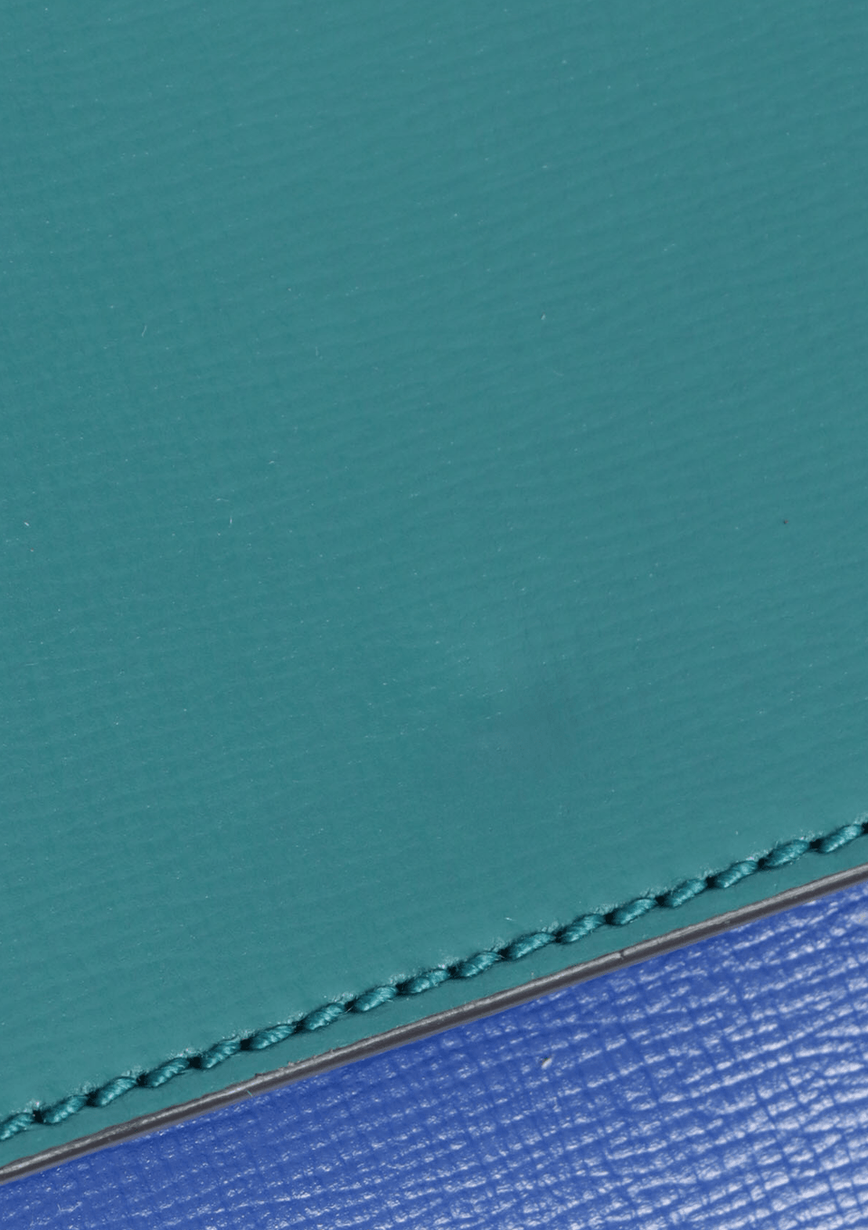- Couro calfskin azul com detalhes verde;