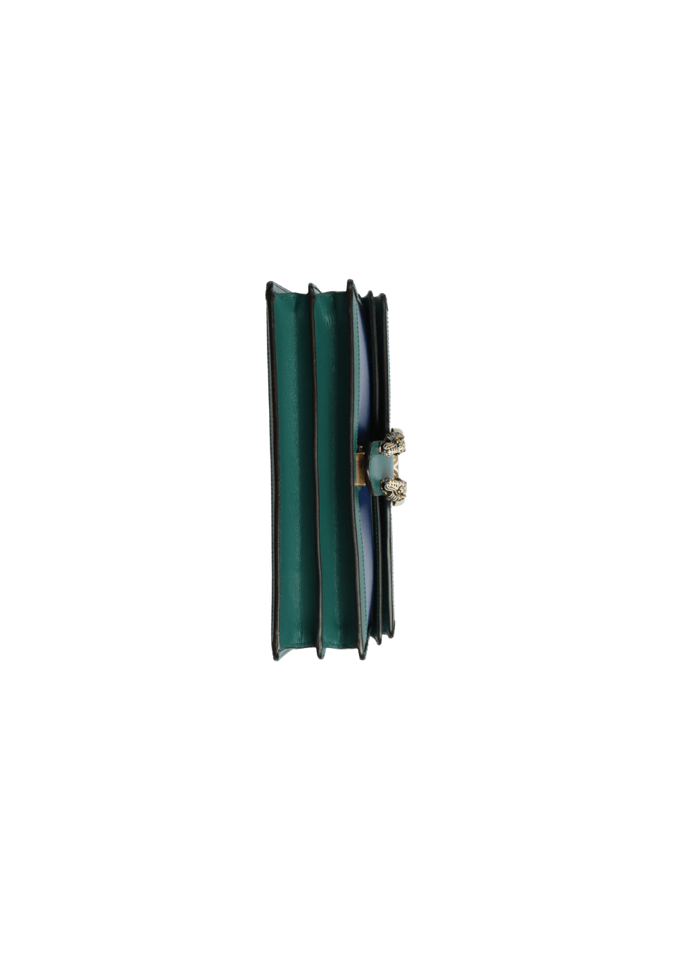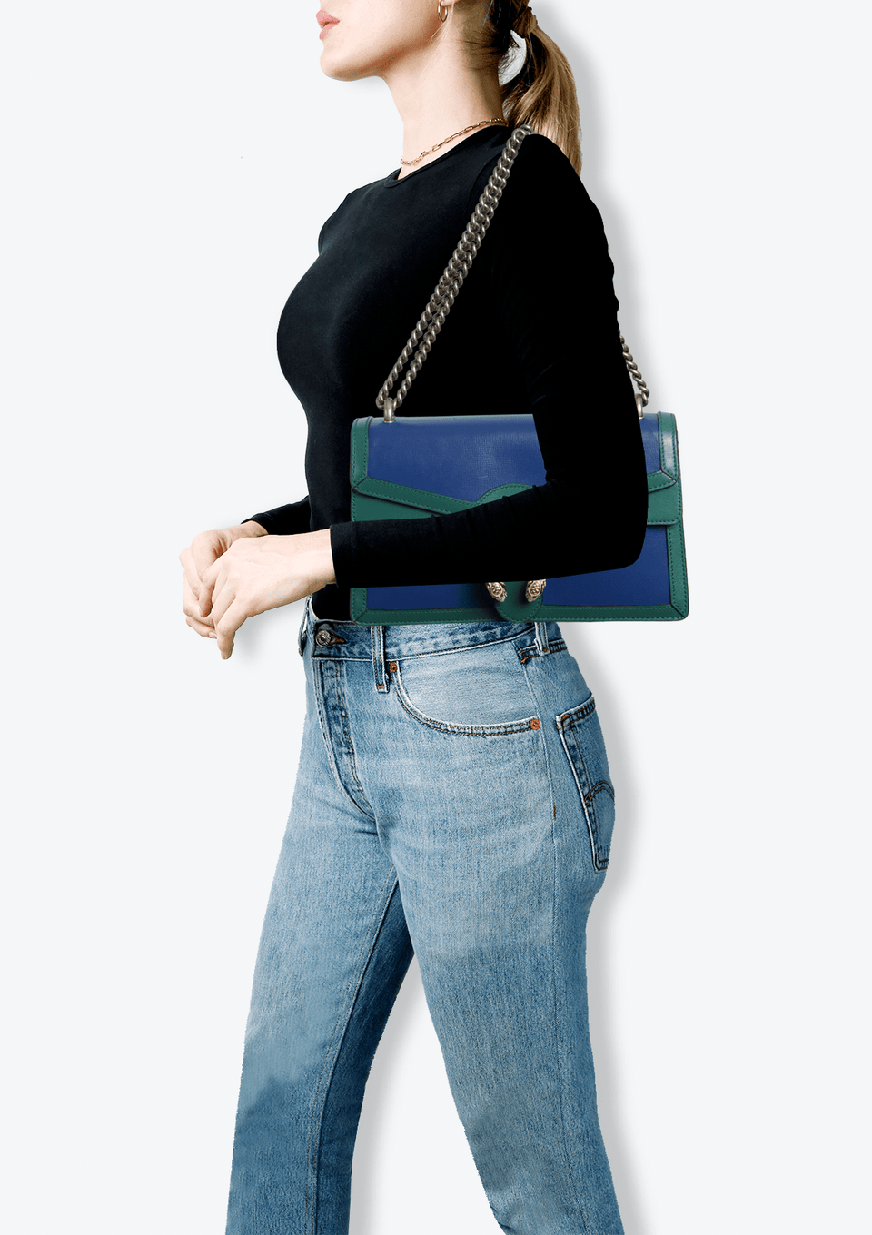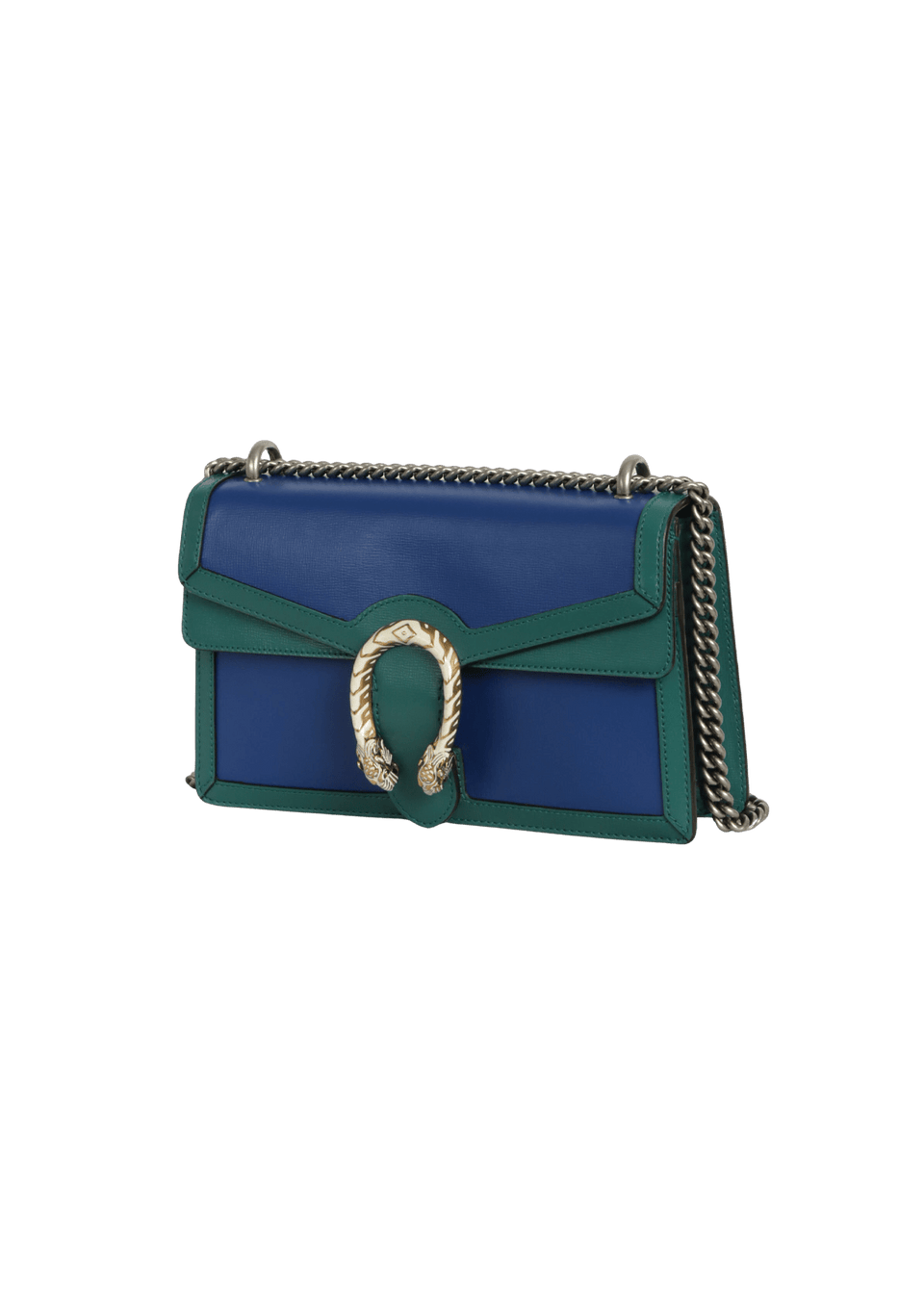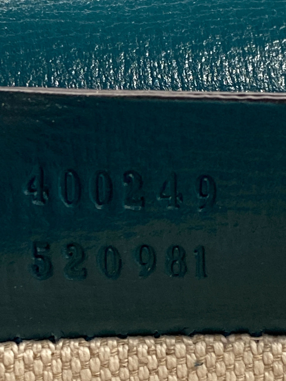 - Couro calfskin azul com detalhes verde;