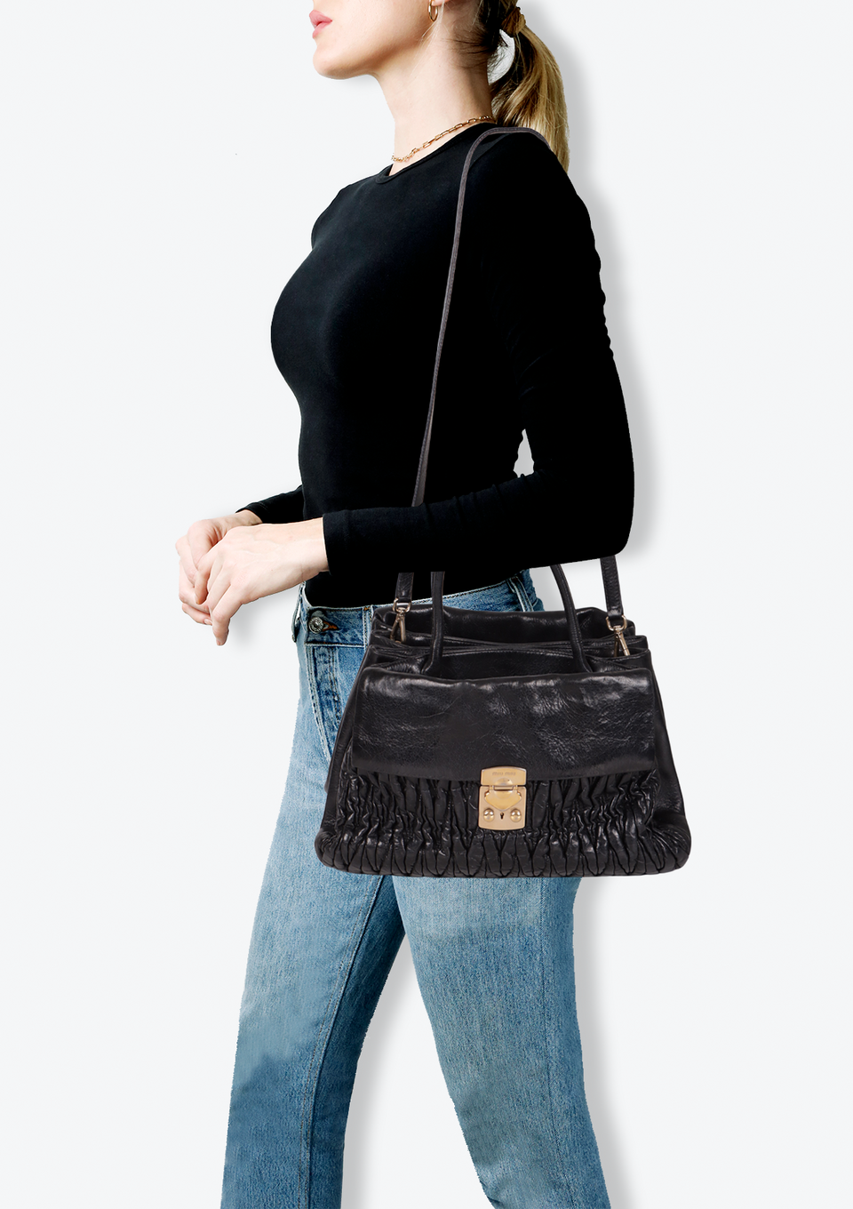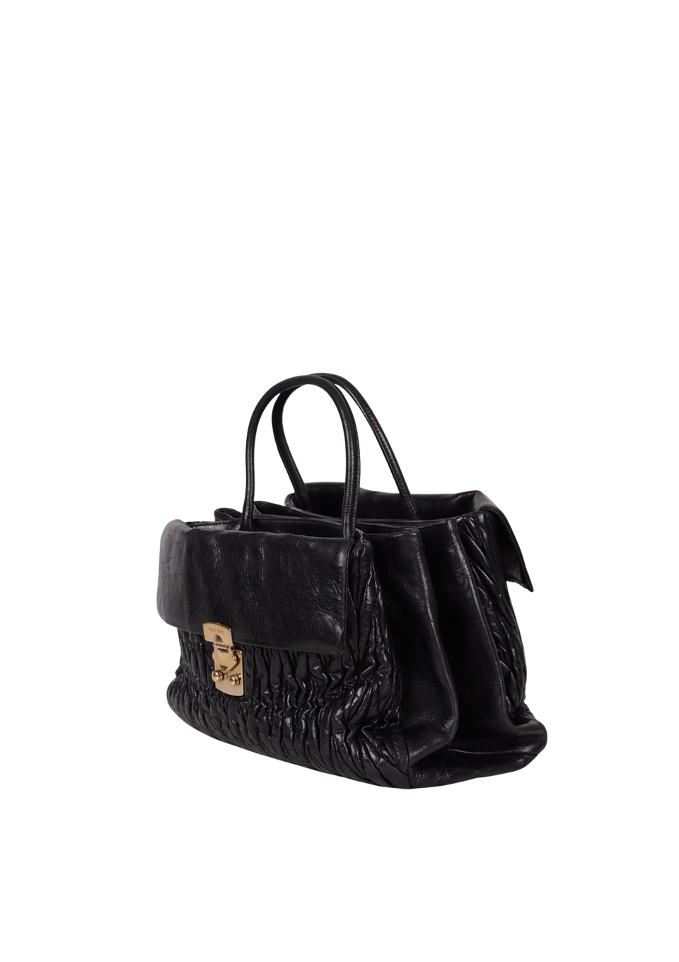 Descrição do Material: Couro calfskin preto com acabamento matelassê
