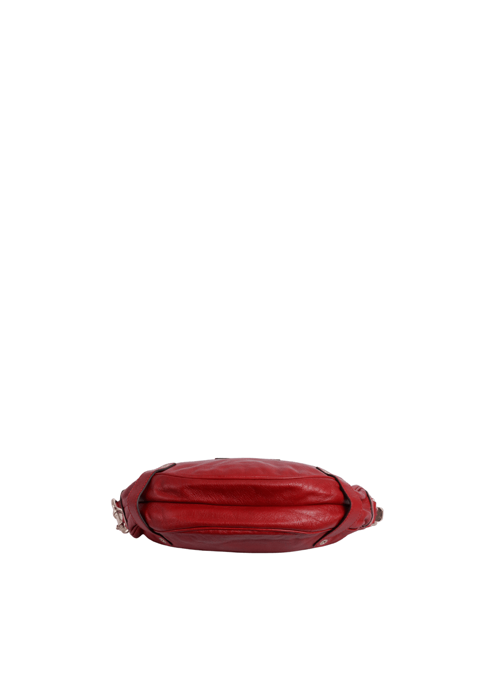 Condição: Bom, com aparência de usado. Apresenta leve ressecamento por todo couro, especialmente manchas esbranquiçadas, leves desgastes e fissuras nas selagens, principalmente dos acabamentos laterais e leves desgastes e descolorações das ferragens.