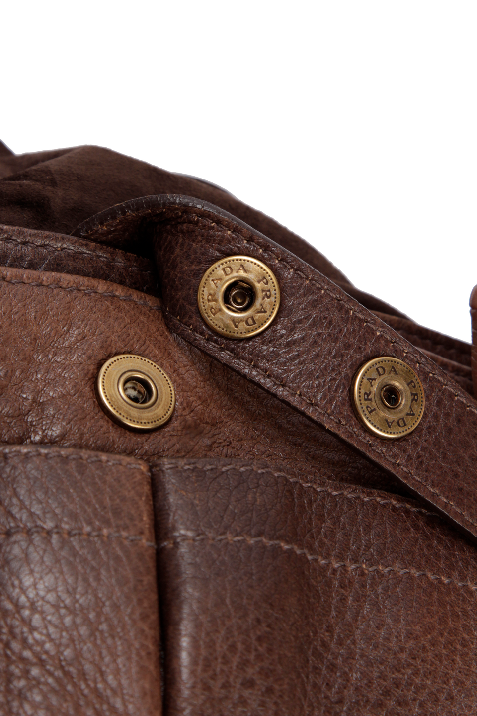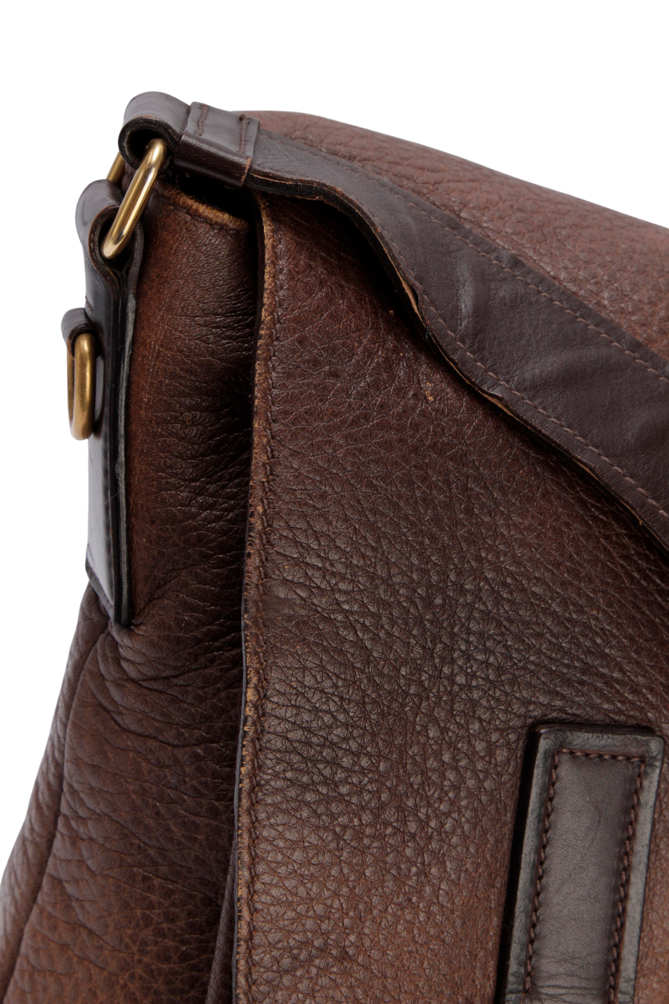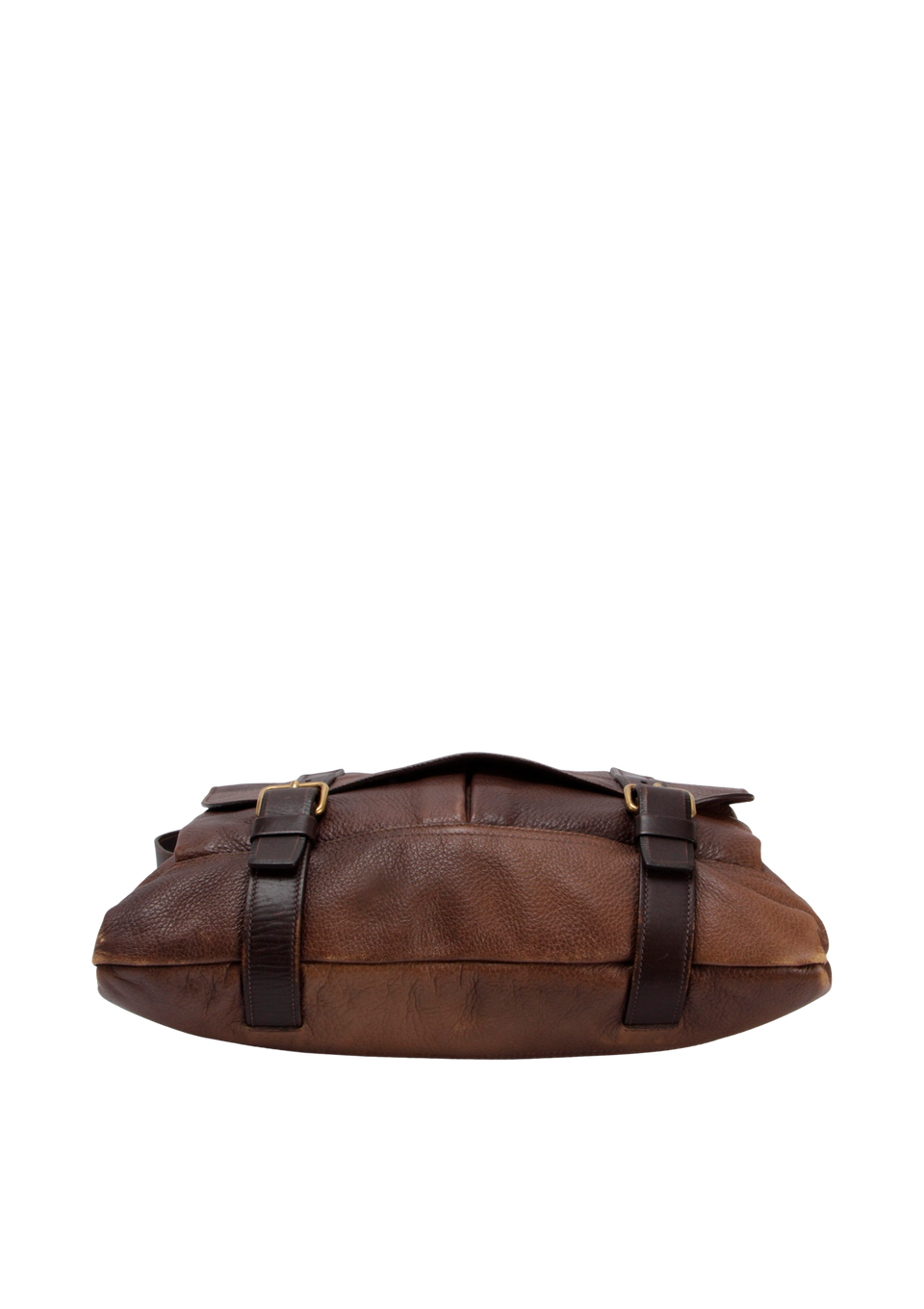 Regular. Apresenta notáveis desgastes, puídos e desbotamentos no couro, principalmente na parte frontal, severos desgastes nos acabamentos, especialmente nas extremidades da base, consideráveis aberturas e fissuras nas selagens, severos desgastes, oxidações e marcas de uso nas ferragens, principalmente nos detalhes laterais e notáveis desgastes no suede interno. O produto apresenta botão de pressão quebrado.