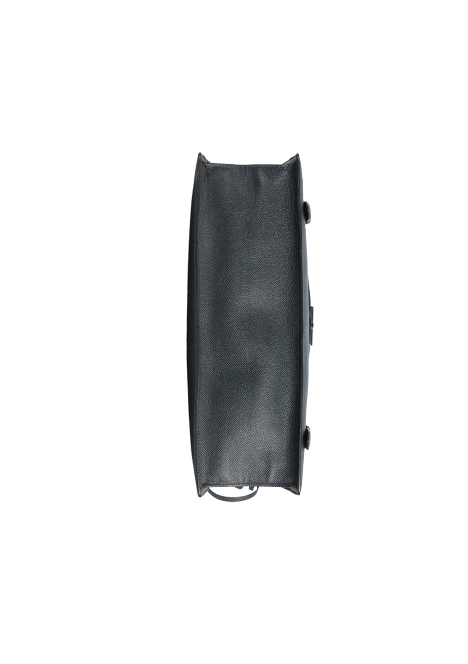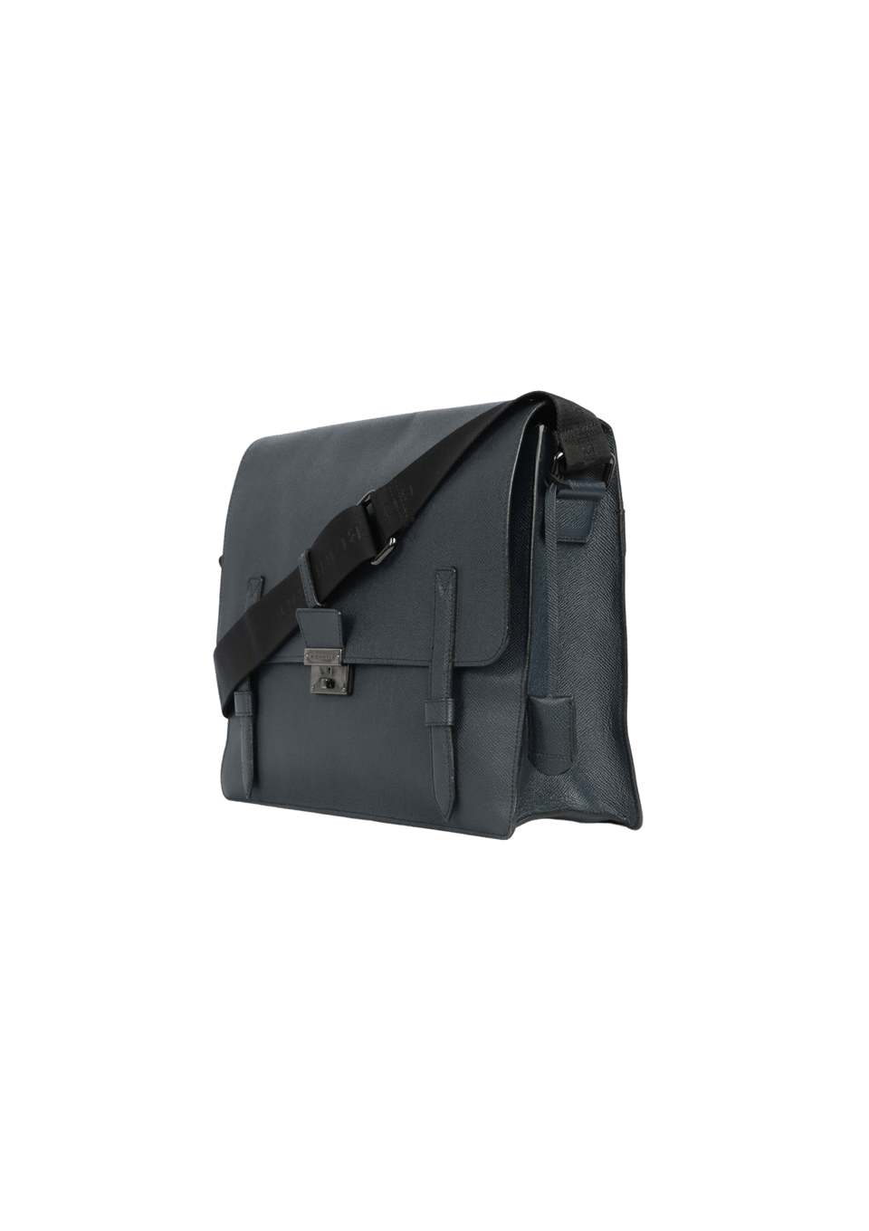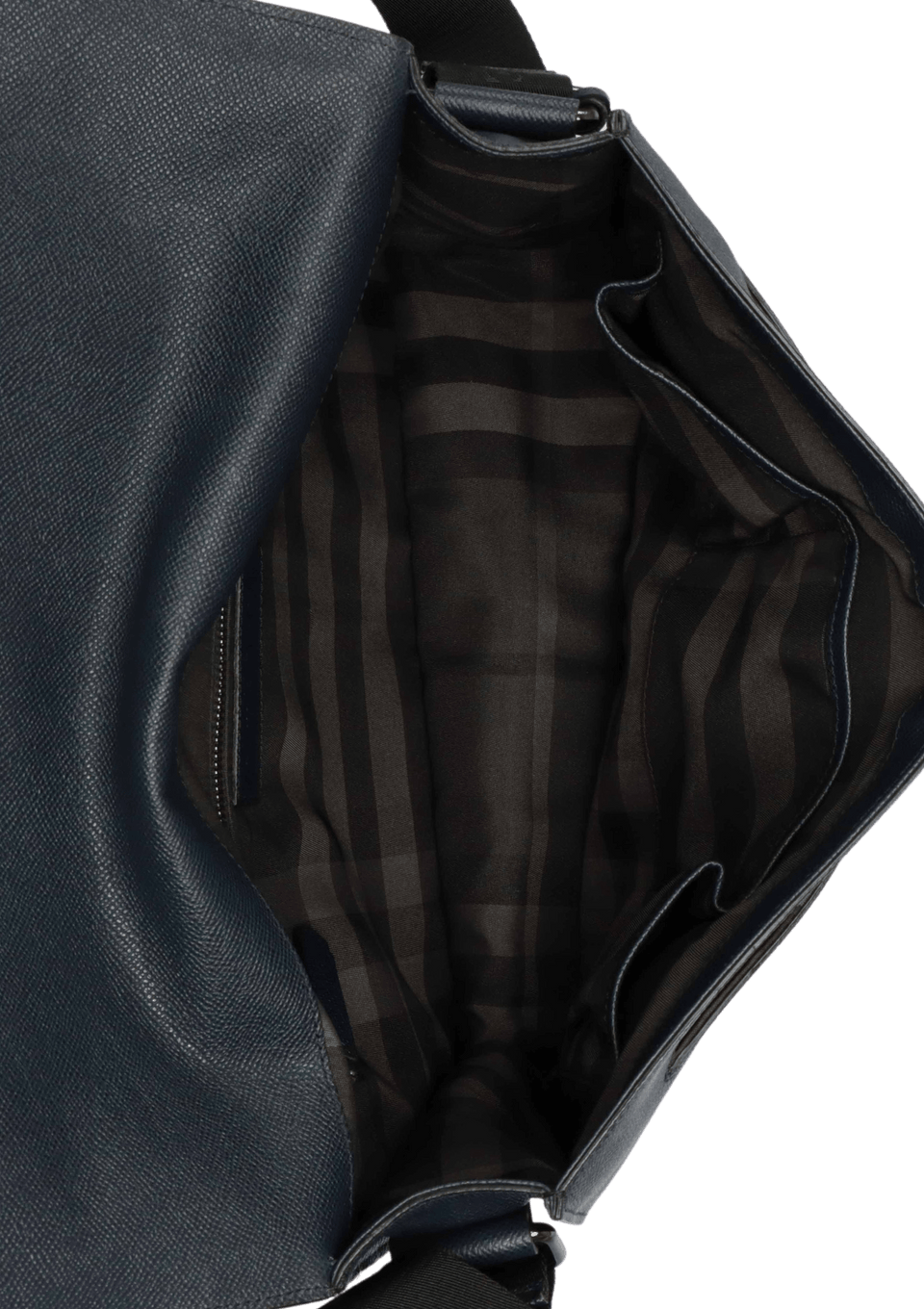 Condição: Produto bom, com aparência de usado. Apresenta pequenos riscos, desgastes, oxidações e marcas de atrito na ferragem do fecho, tag de couro desencaixada, pequenas manchas nas selagens laterais e nas selagens da base, mínimas manchas claras pelo couro e mínimas fissuras nas selagens da dobra da aba.