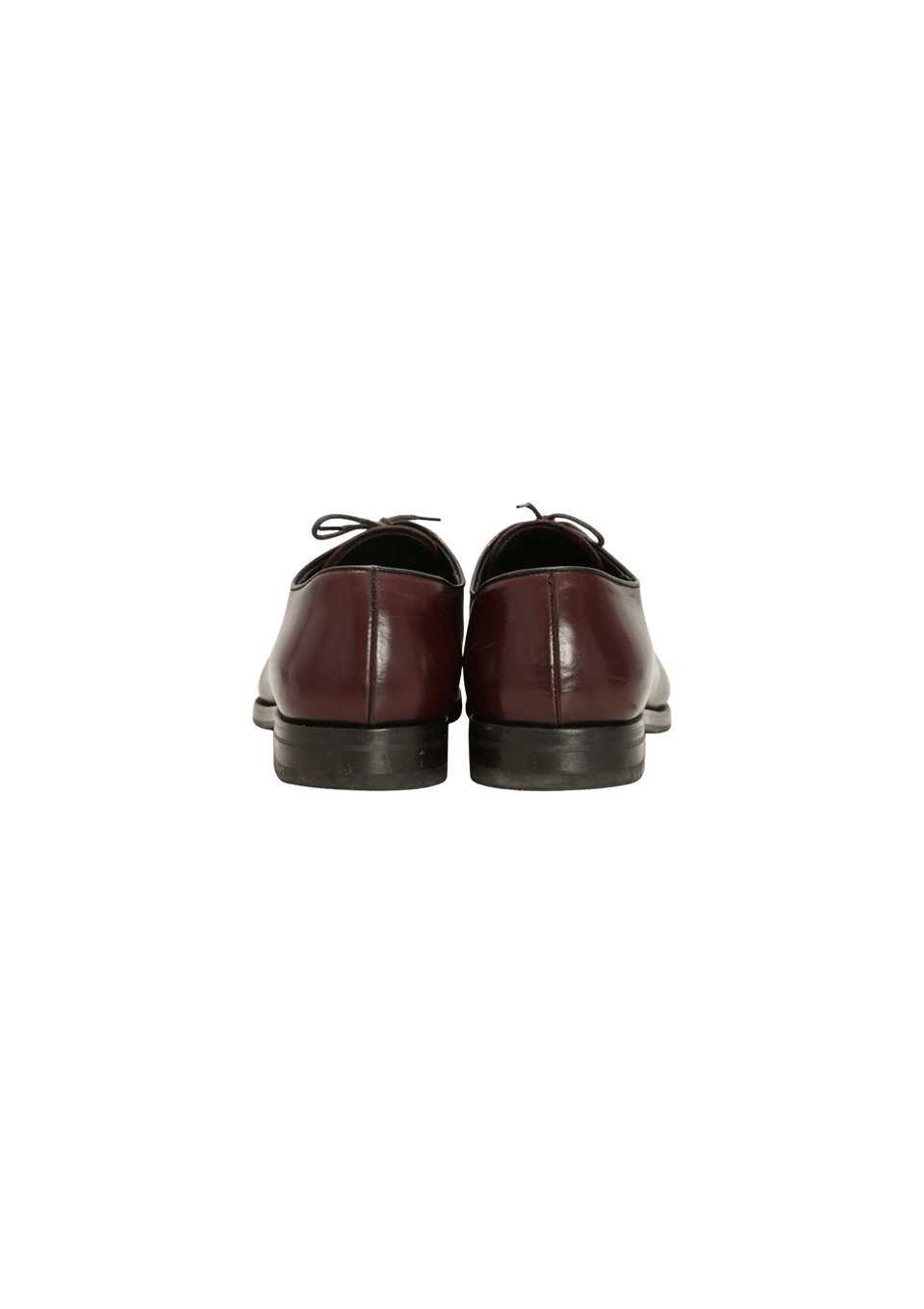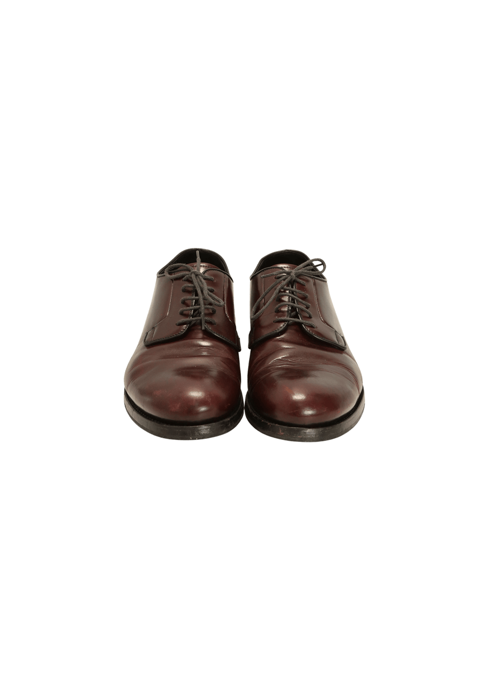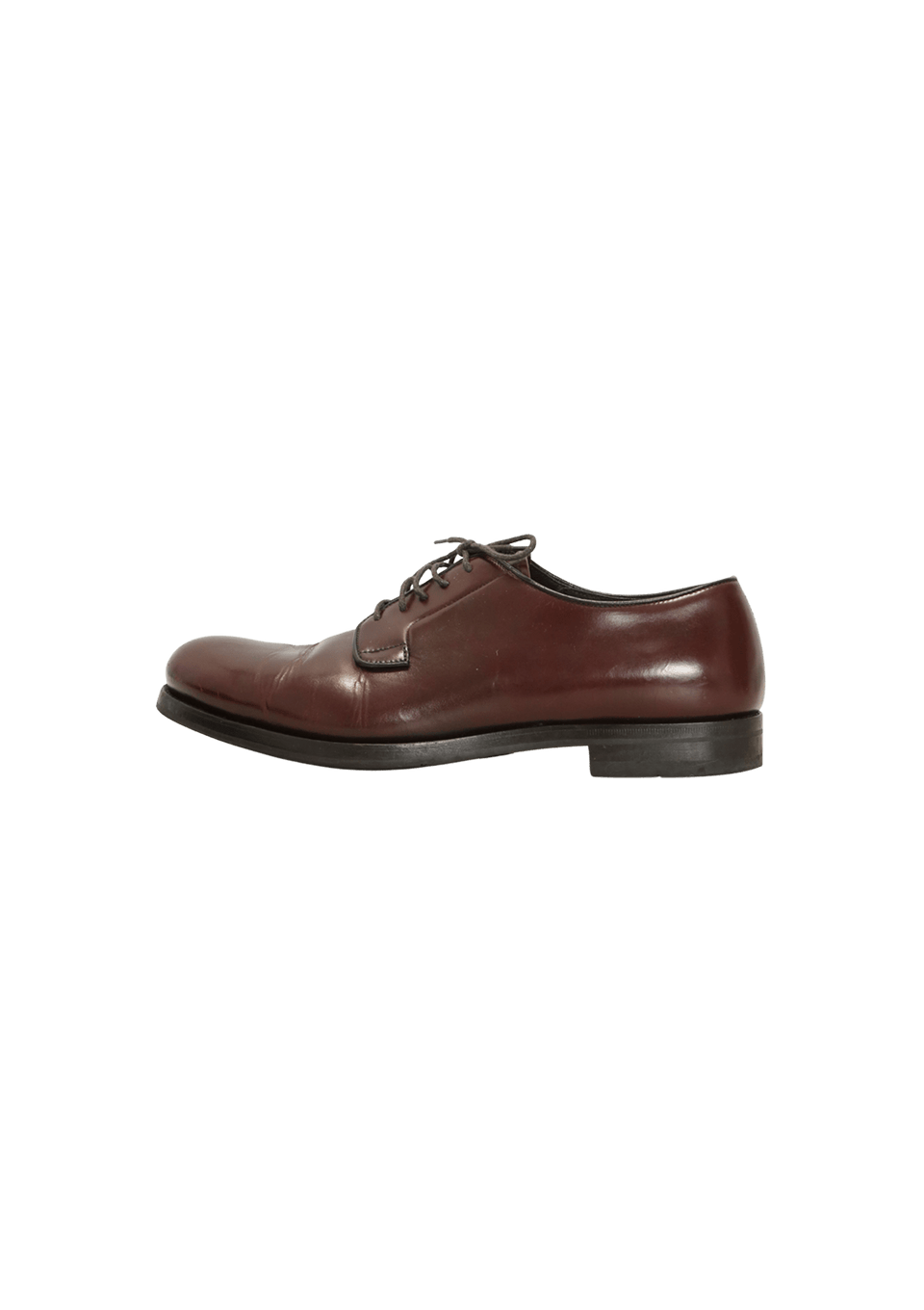 Condição: Bom, com aparência de usado. Apresenta pequenos desgastes e marcas de uso no couro na parte da frente, palmilhas minimamente desgastadas e solas parcialmente usadas.