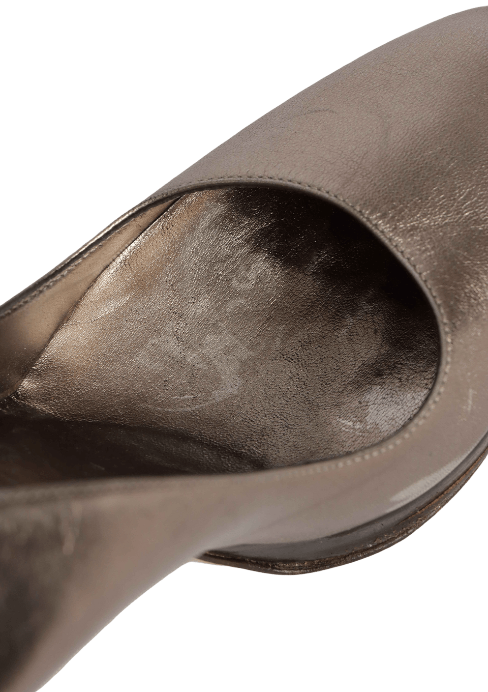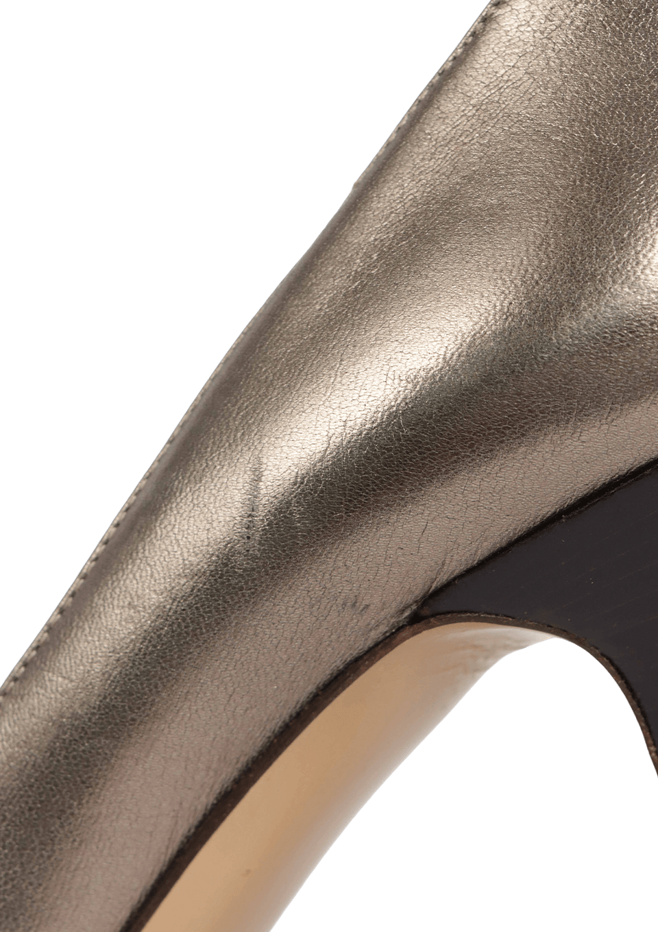Condição: Regular. Apresenta riscos, desgastes e manchas escurecidas severas no couro na parte externa, riscos e fissuras nas palmilhas e desgaste de uso nas solas.
