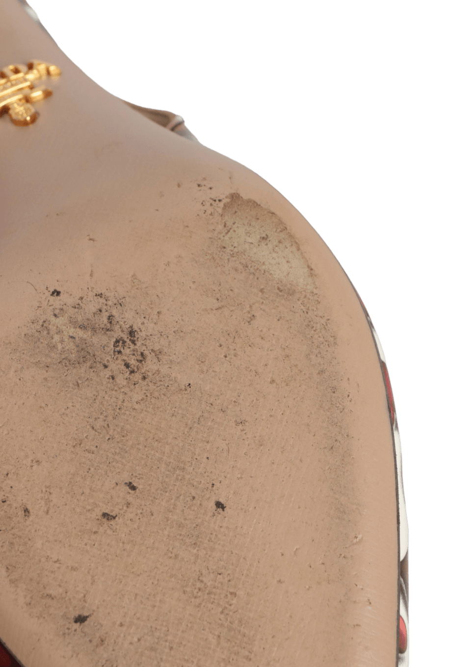 - Couro off white com estampa de corações vermelhos;