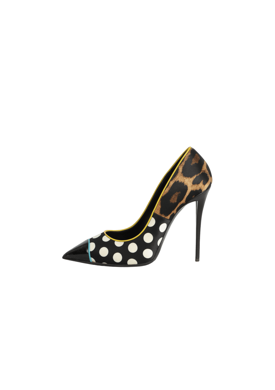 - Tecido com estampa poá e animal print e verniz preto.