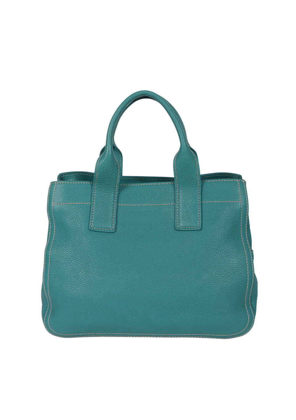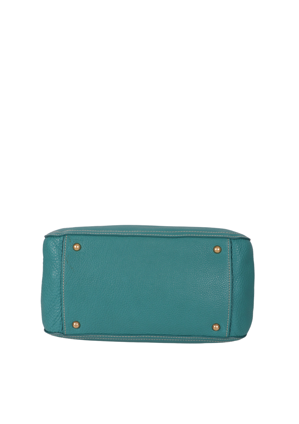 Muito bom, com aparência de seminovo. Apresenta levíssimas deformidades pela estrutura, especialmente nas partes inferiores frontais e de trás, mínimas marcas e manchas de uso pelo couro, principalmente na parte superior do lado direito frontal, do lado esquerdo da base e do lado esquerdo da alça de mão frontal, levíssimas marcas de uso nas ferragens da logo frontal, nos detalhes da alça de ombro e nos puxadores dos cursores internos e mínimos puídos, manchas e marcas de uso pelo forro.