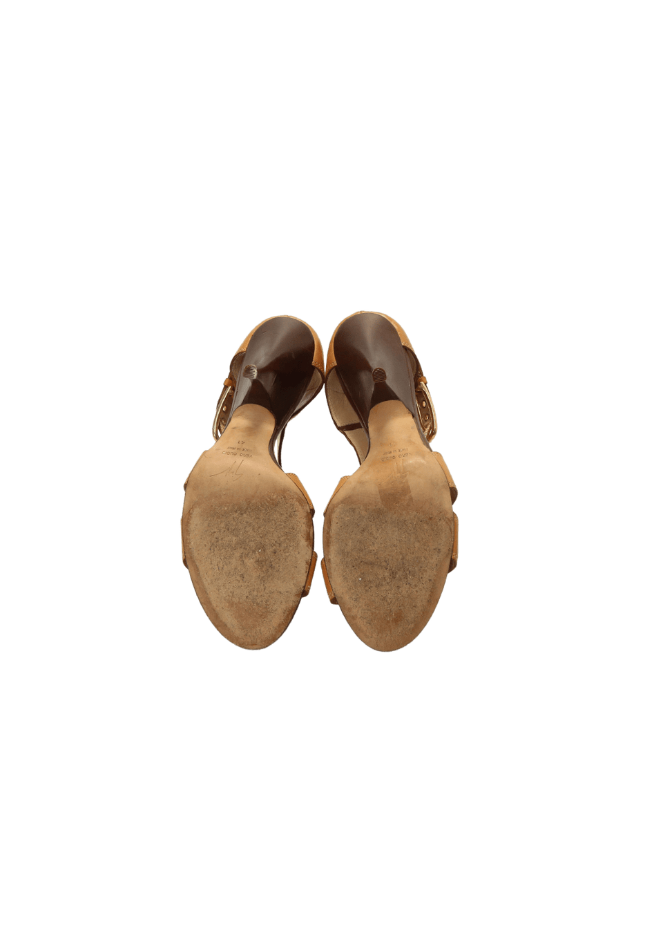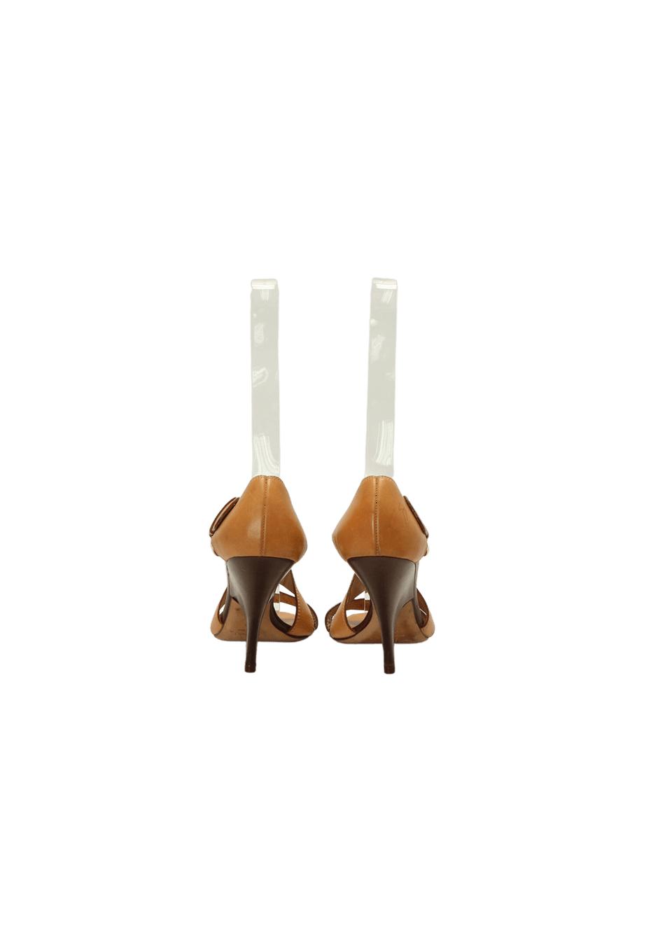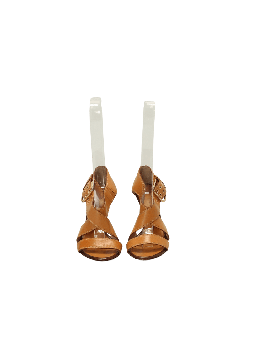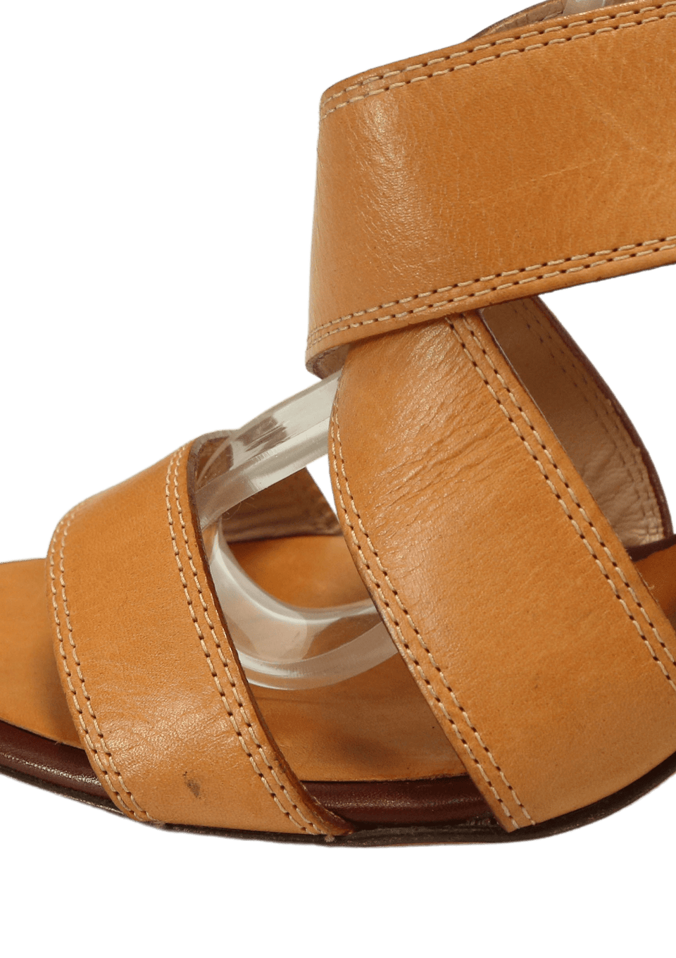 Condição: Bom, com aparência de usado. Sola usada, Salto semi novo, Palmilha usada, Parte externa usado com marcas na frente, lado, atrás. Couro externo com marcas de uso, riscos e desgaste na parte da frente. Ferragem oxidada.
