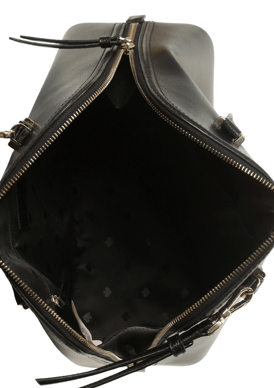 - Compartimento único com dois bolsos internos abertos e um bolso interno fechado por cursor;