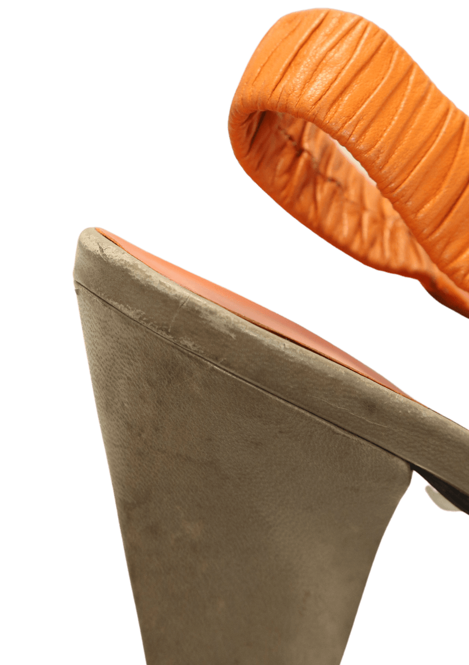 - Couro cinza e laranja.