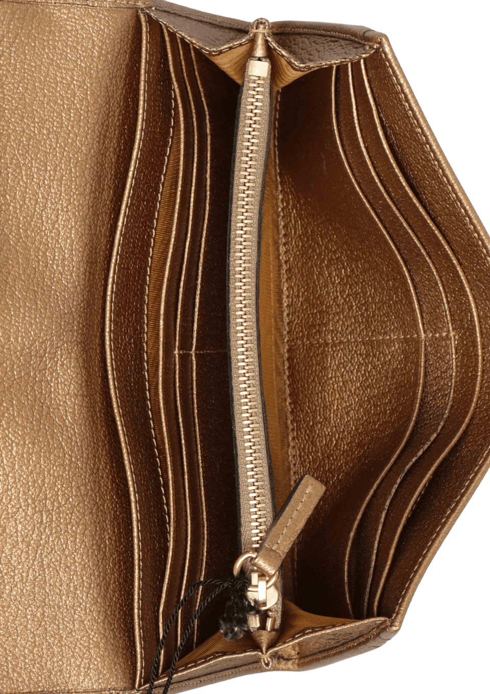 - Compartimento duplo com quatro bolsos internos abertos, um fechado por cursor e múltiplos bolsos porta-cartões;
