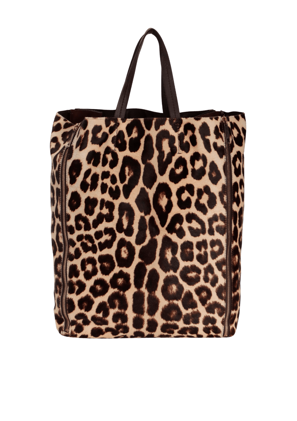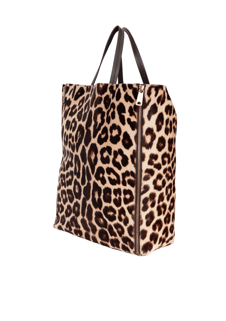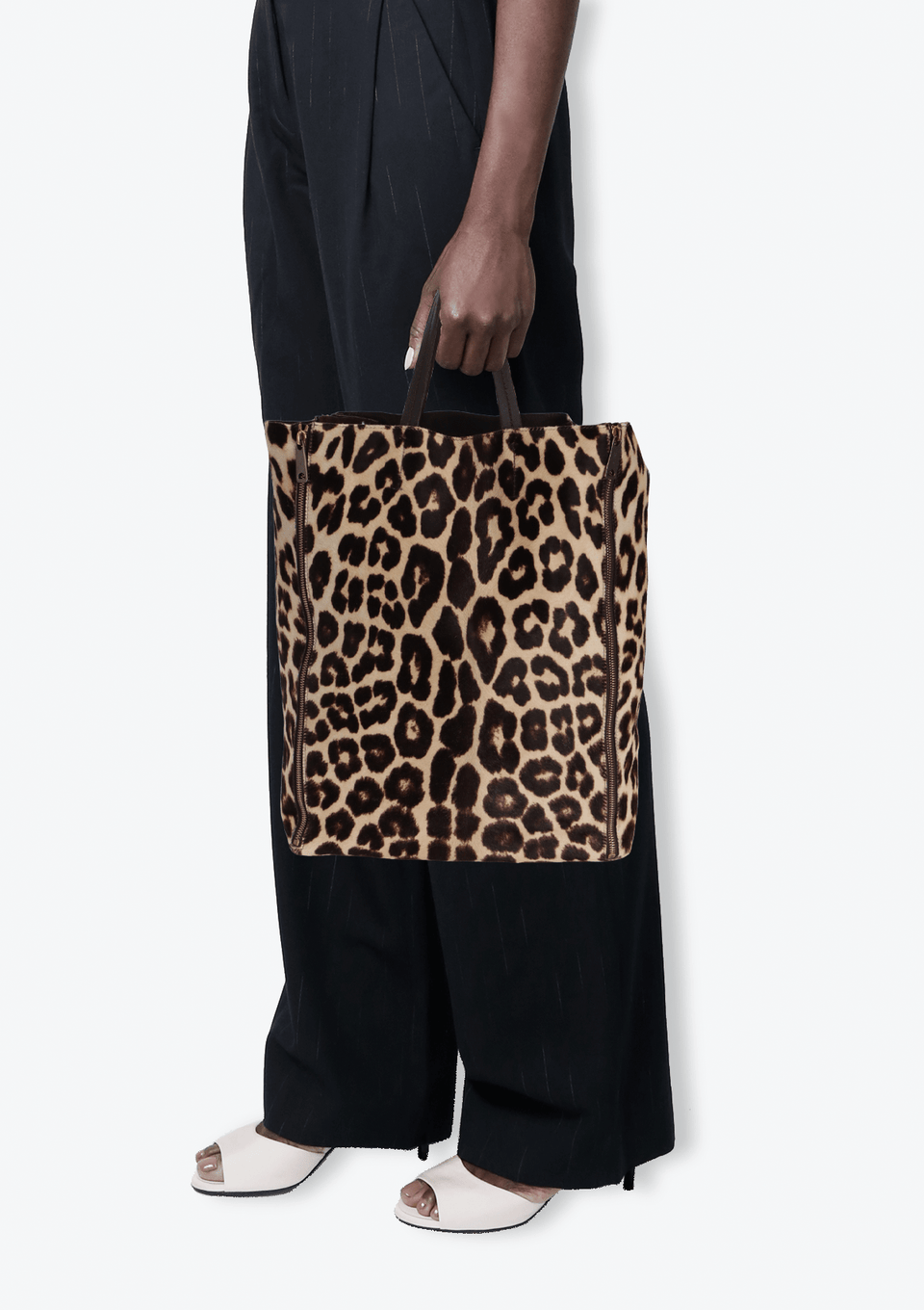 LEOPARD VERTICAL GUSSET CABAS TOTE