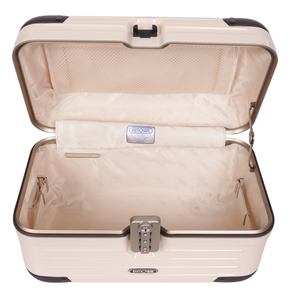 Descrição do Material: Policarbonato bege com detalhes em plástico preto