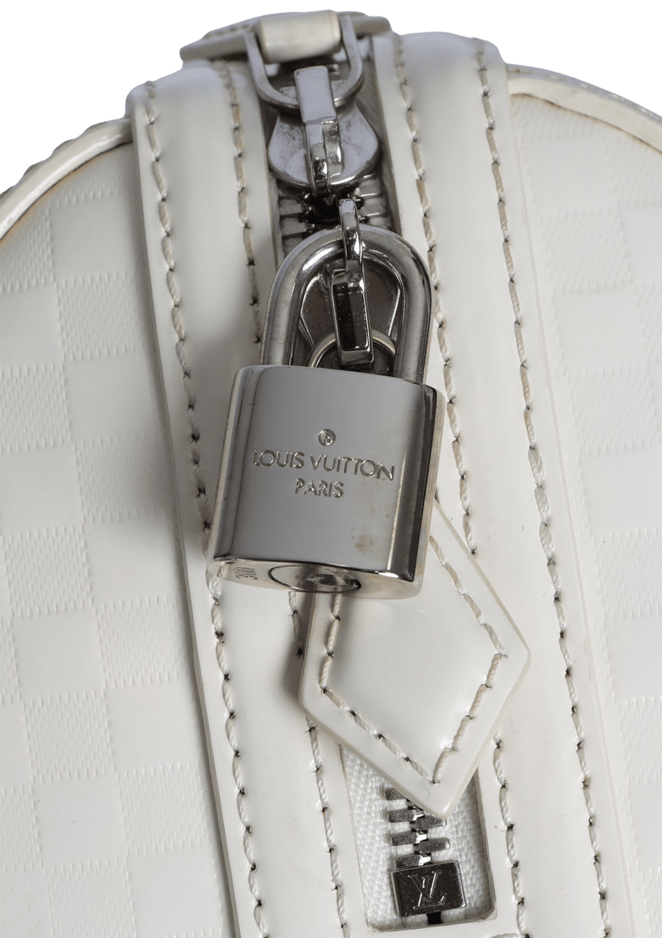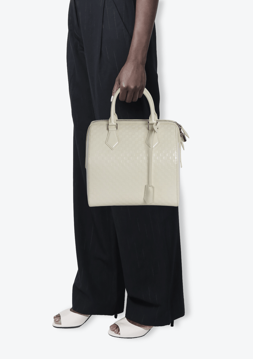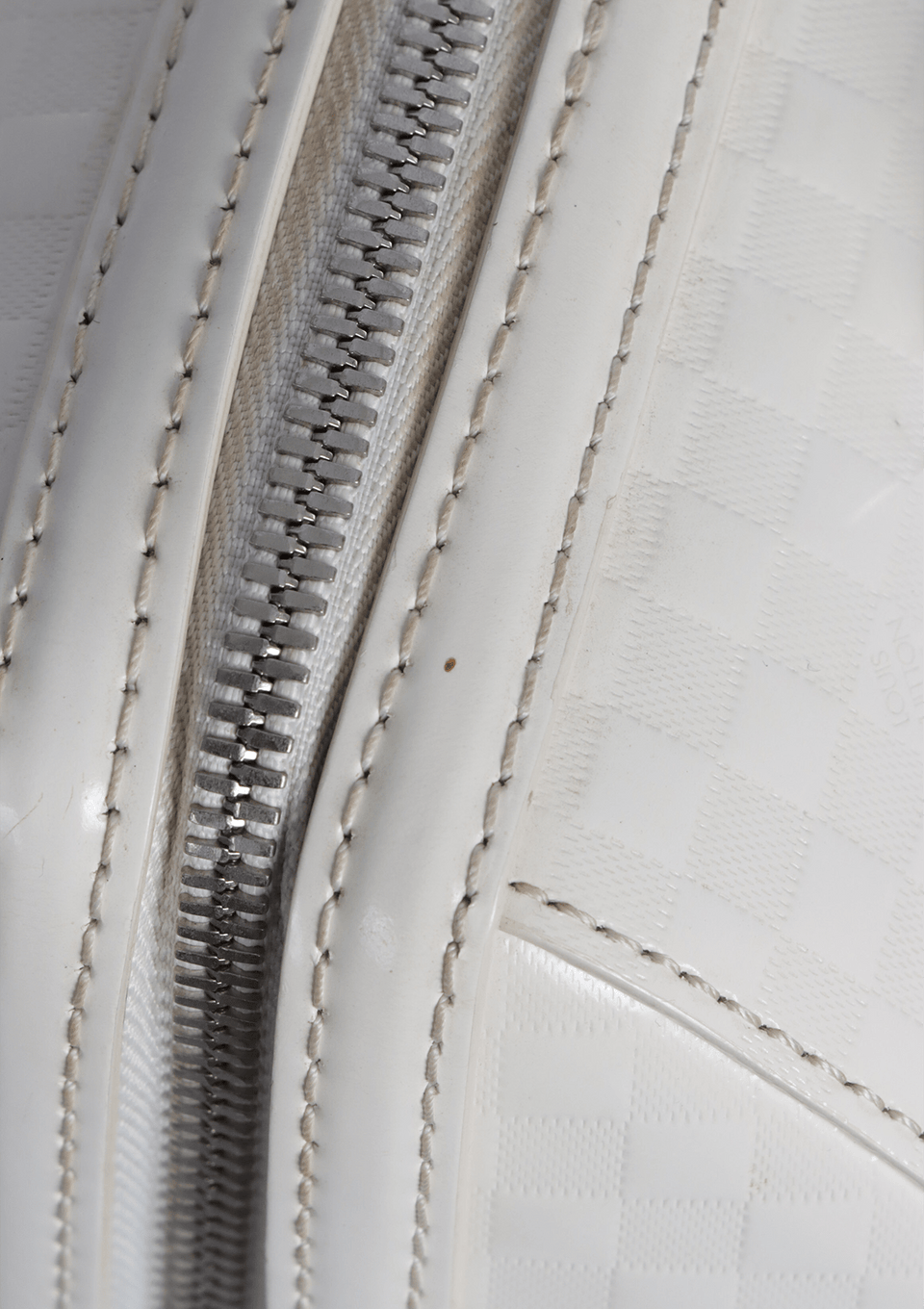 - Canvas Damier Facette off white e detalhes de couro calfskin off white com acabamento envernizado;