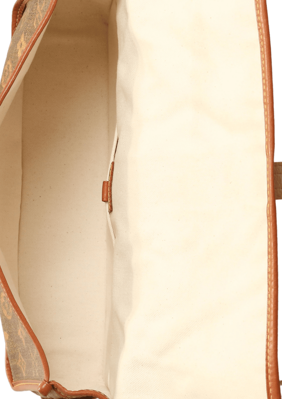 - Compartimento único com dois bolsos internos abertos;