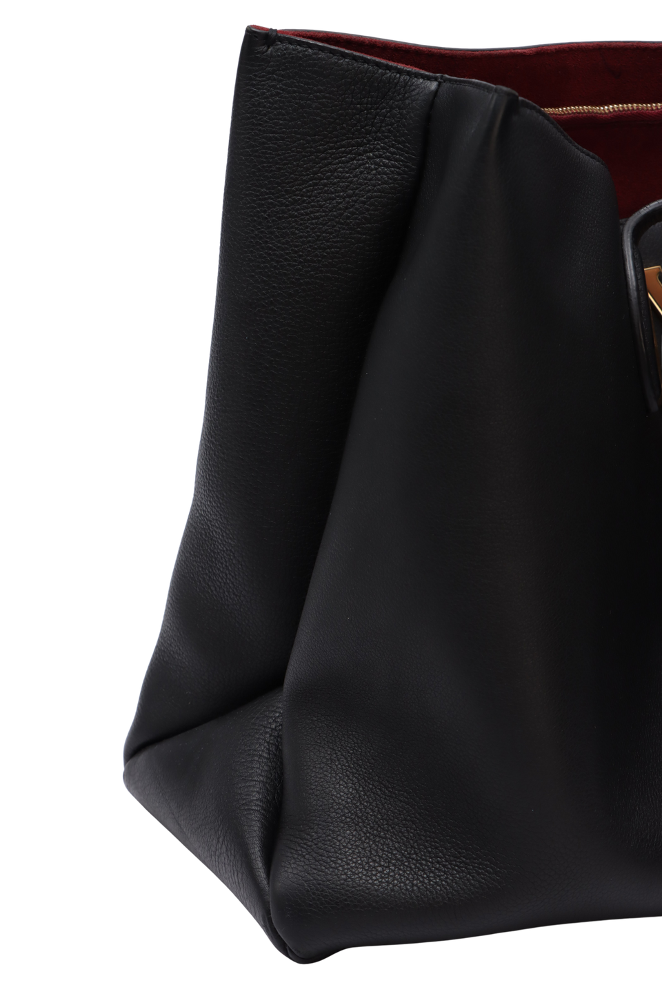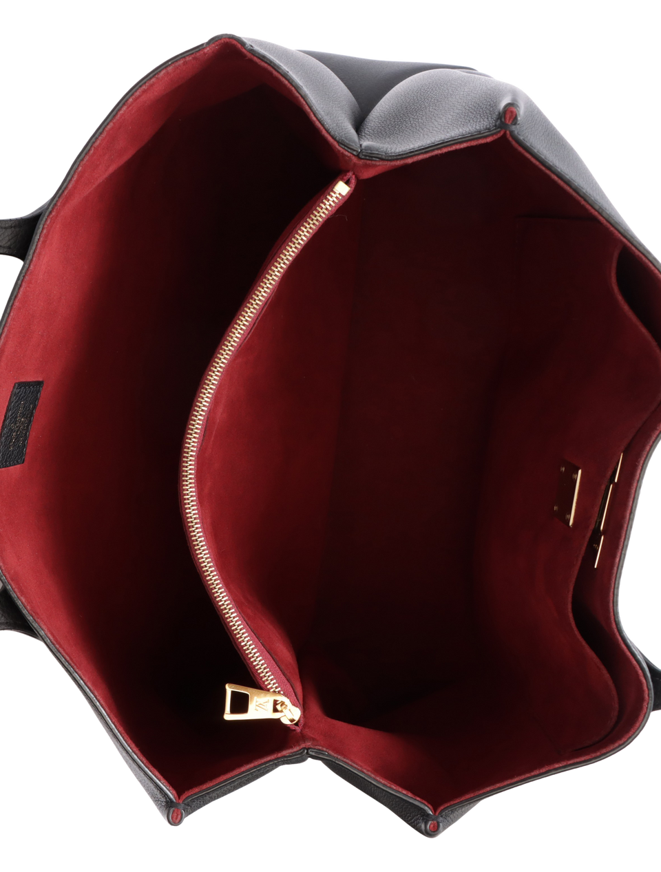 Bom, com aparência de usado. Apresenta leves desgastes e marcas de uso pelo couro, especialmente nos cantos da base e na parte frontal inferior, pequenas fissuras e desgastes nas selagens, principalmente nos acabamentos inferiores das alças, leves marcas de uso nas ferragens, especialmente na logo, pequena deformação na estrutura, principalmente n parte inferior do lado esquerdo e leves desgastes e manchas de caneta e escurecidas no forro, especialmente na base e nos acabamentos posteriores superiores.
