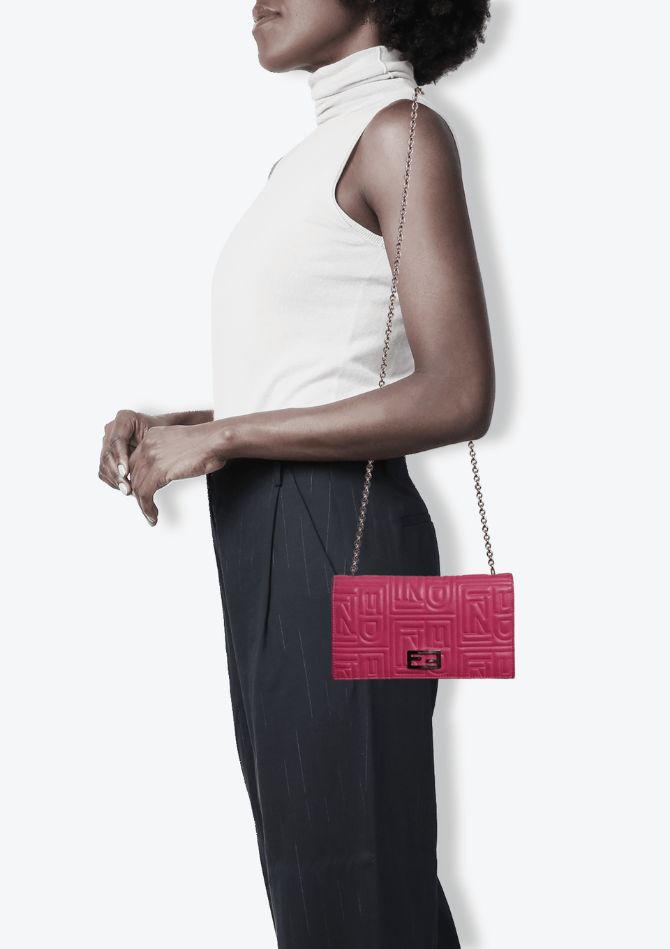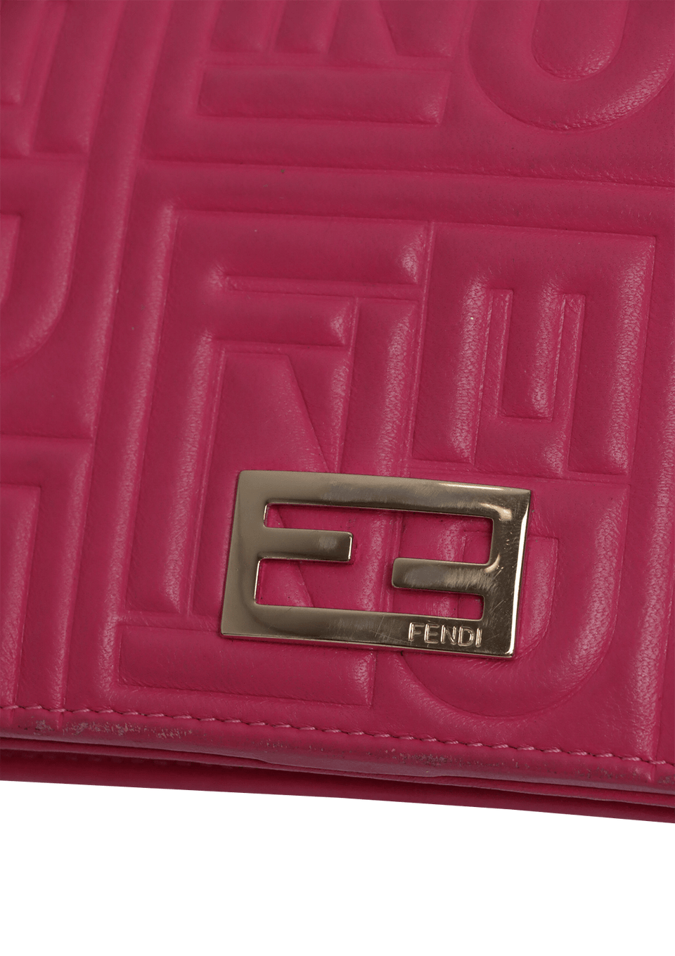 - Couro nappa rosa com acabamento Fendi em alto-relevo;