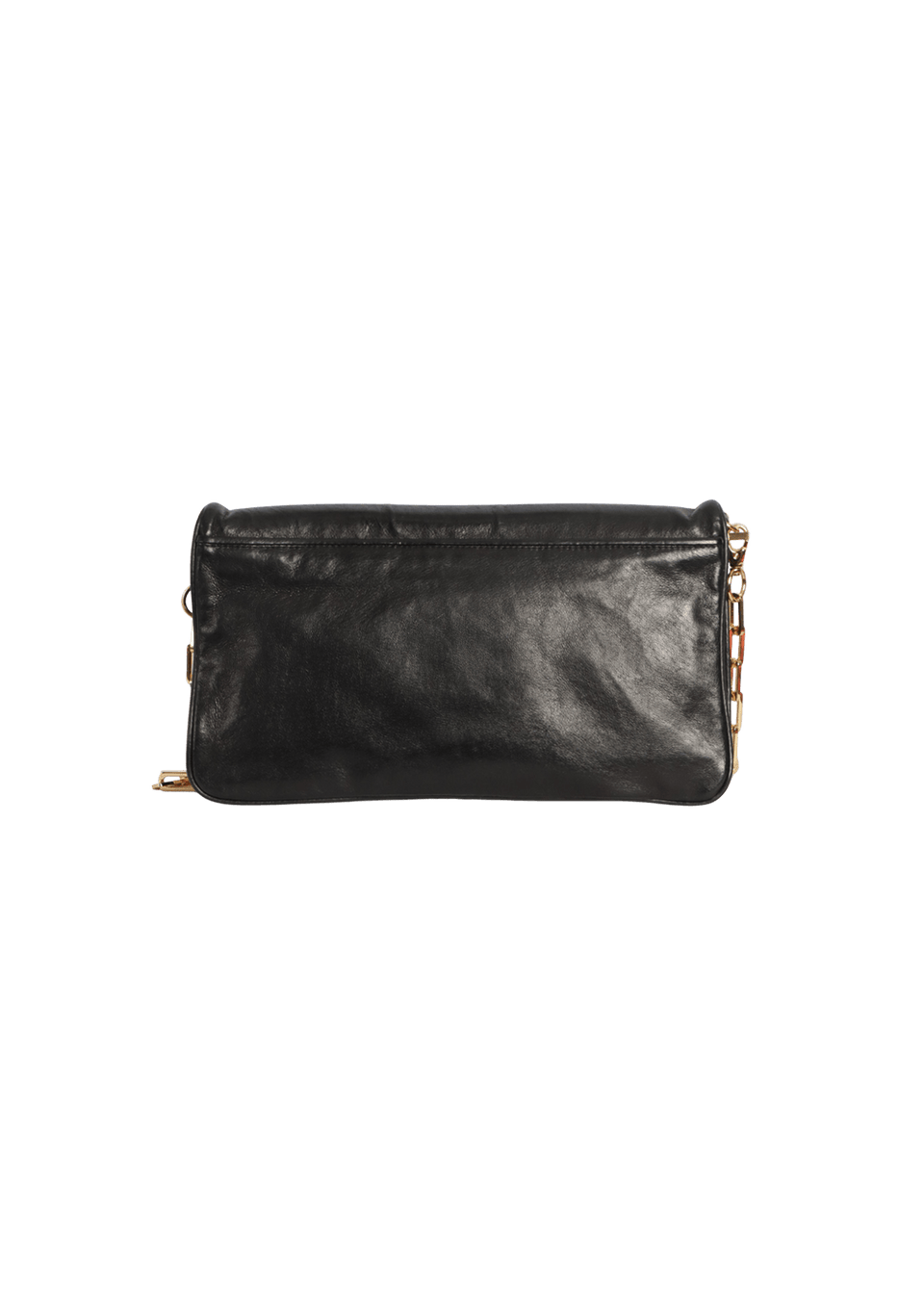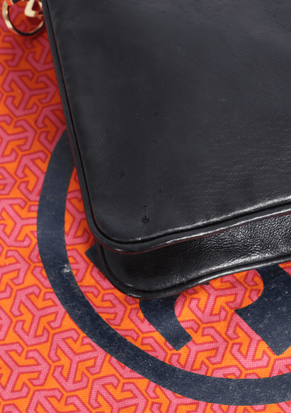 Condição: Bom, com aparência de usado. Apresenta leves desgastes e descolorações nas ferragens, especialmente da logo frontal, pequenas marcas de uso e desgastes no couro, especialmente no canto esquerdo frontal, leve deformação na estrutura original da bolsa, pequenos desgastes nas selagens da alça de ombro e leves marcas de uso no forro.