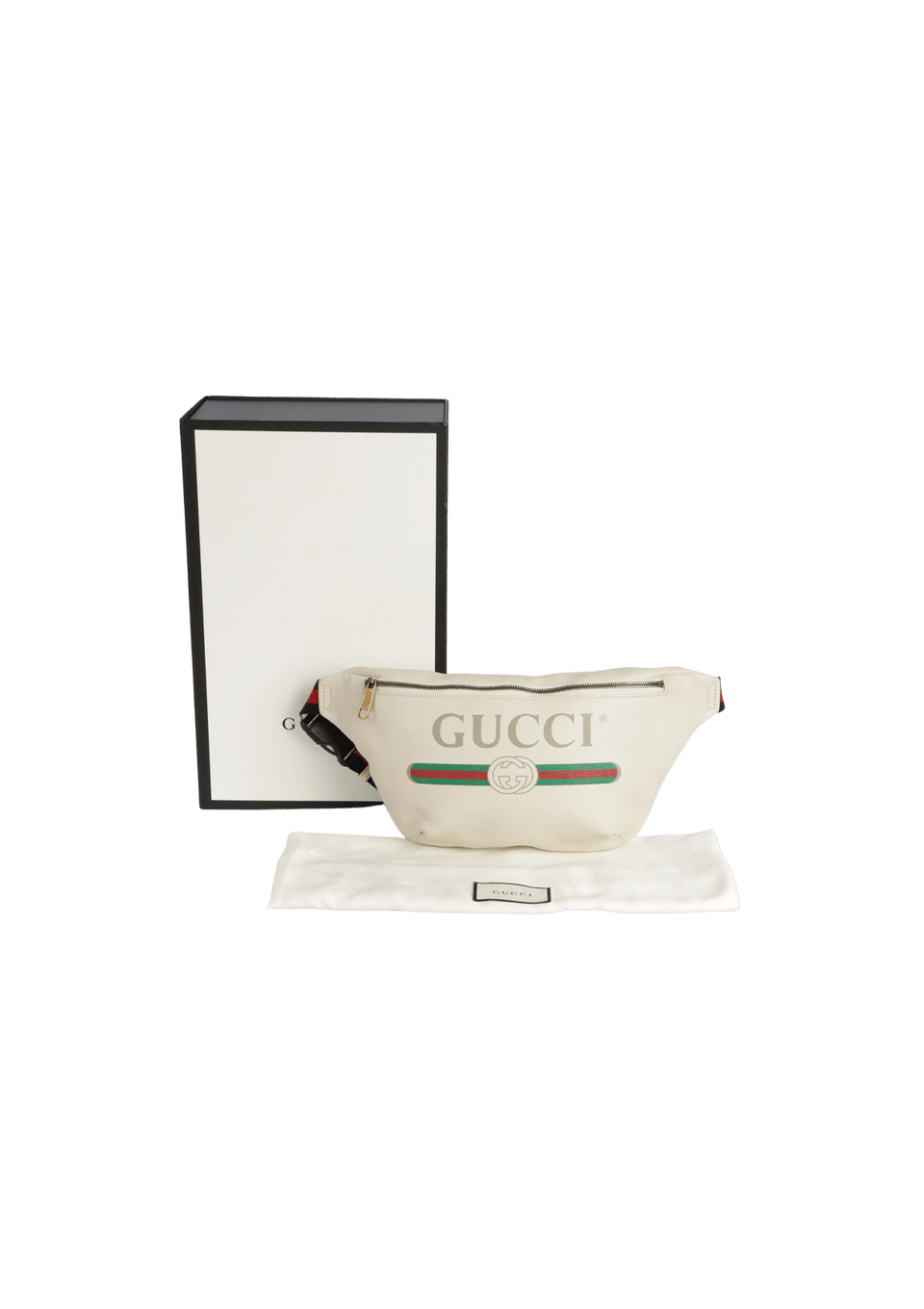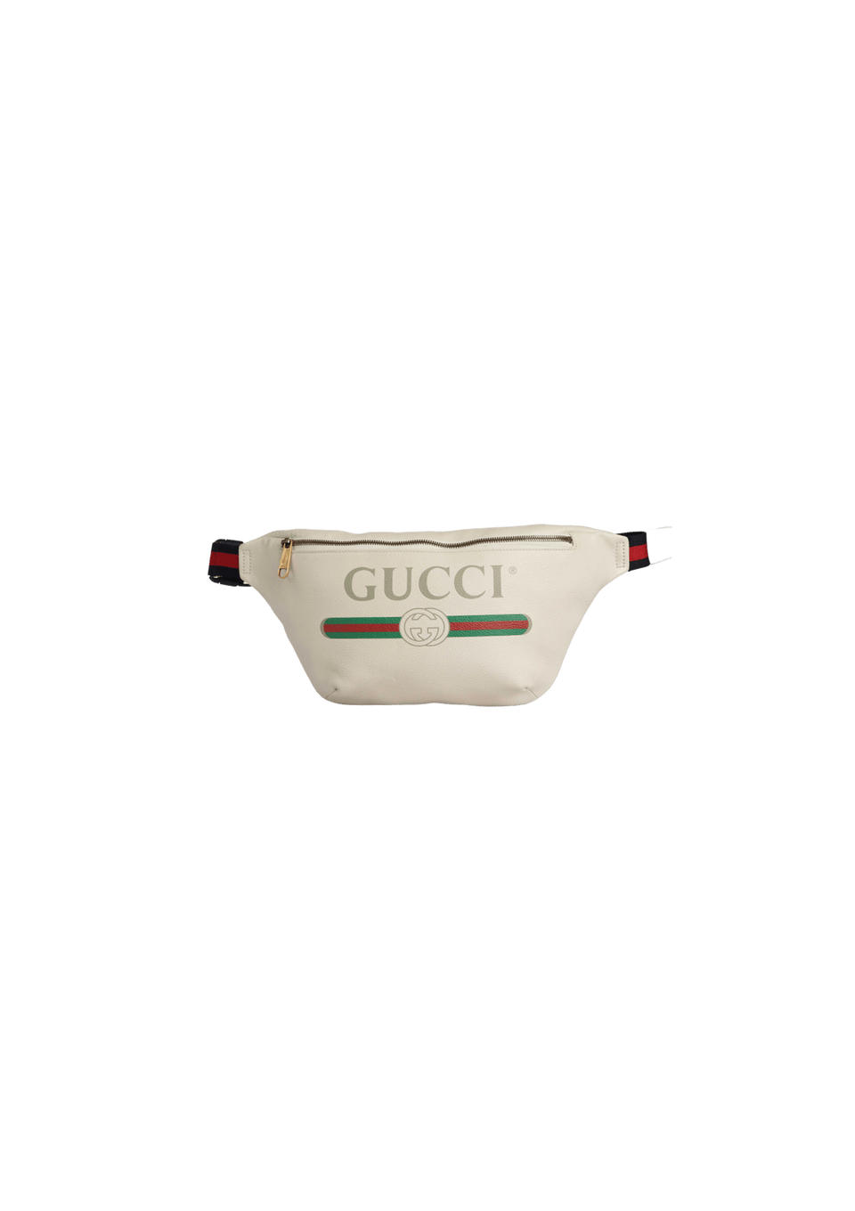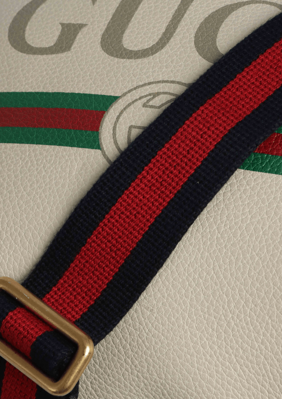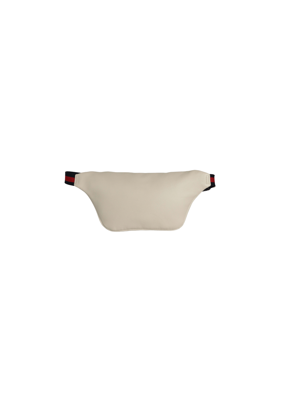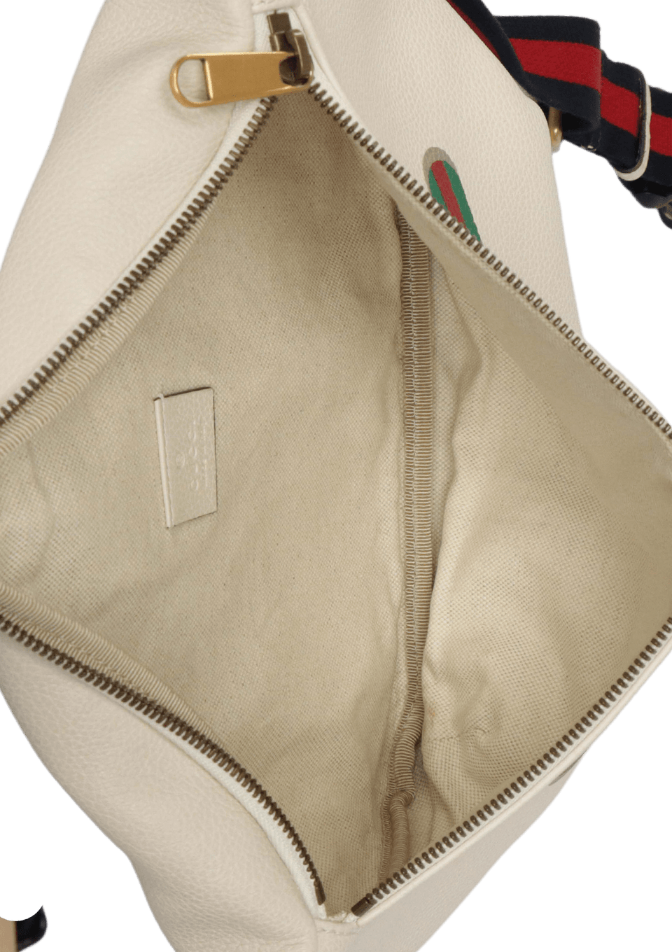 • Couro calfskin off white e faixa Web nas cores azul e vermelho;