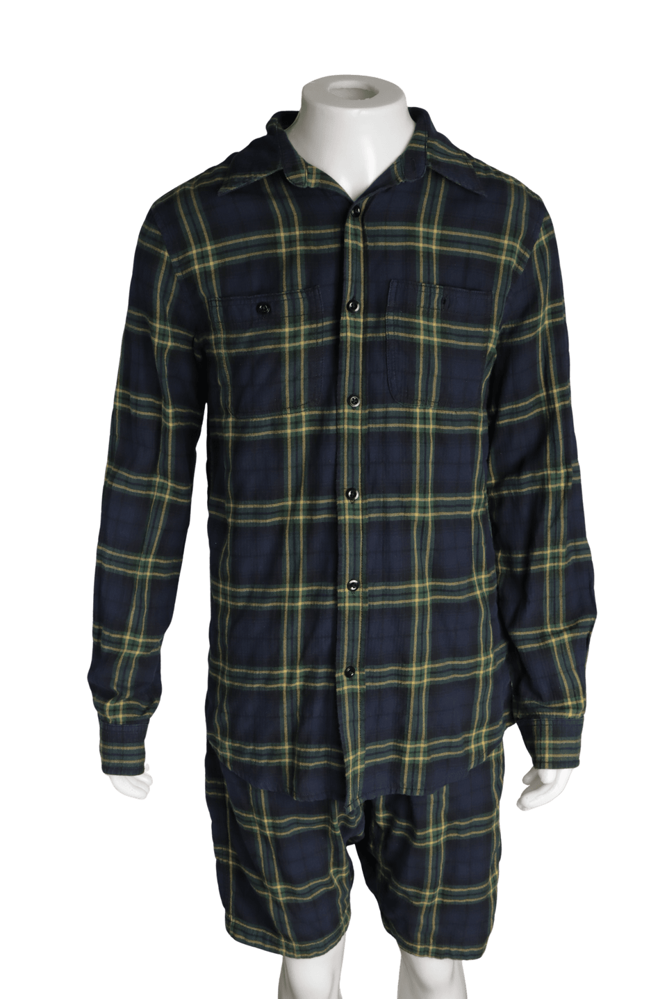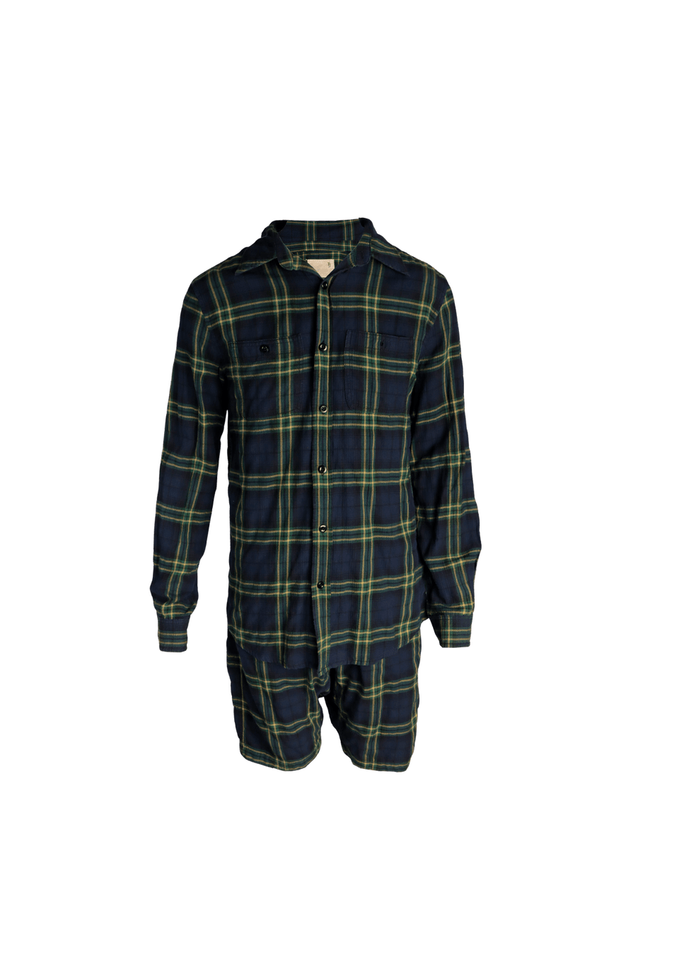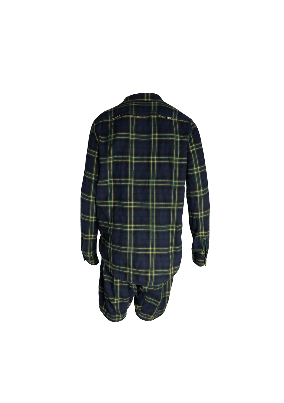 Descrição do Material: Tecido azul com padronagem tartan na cor verde