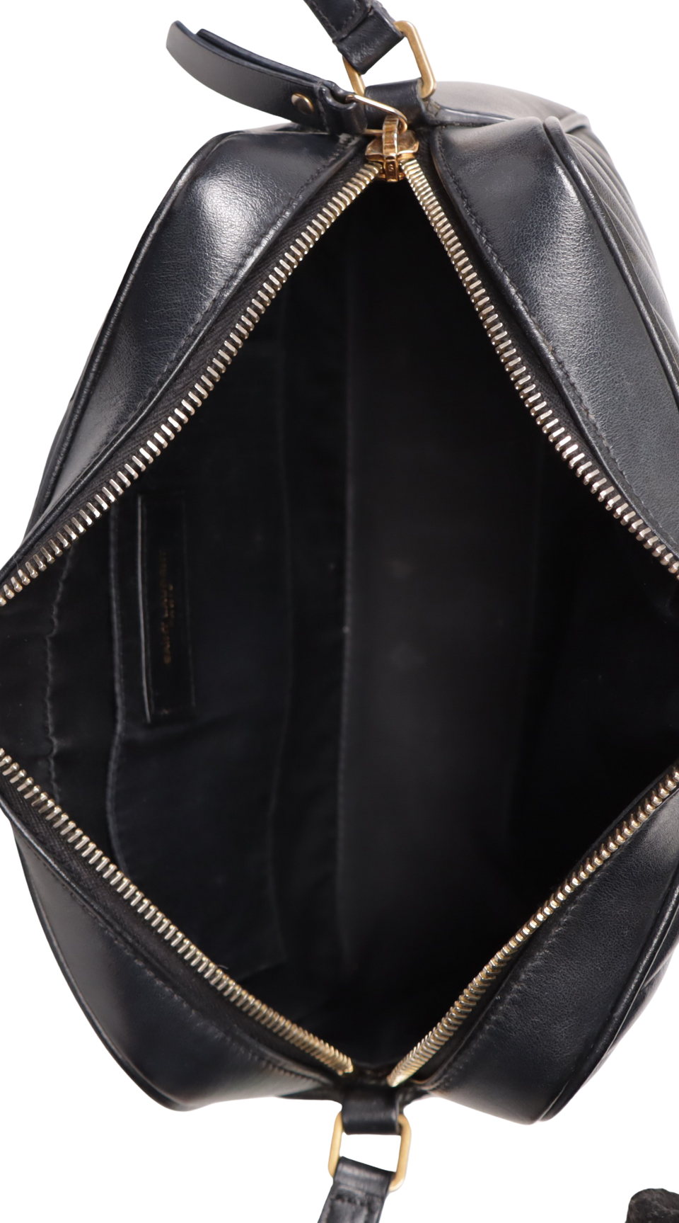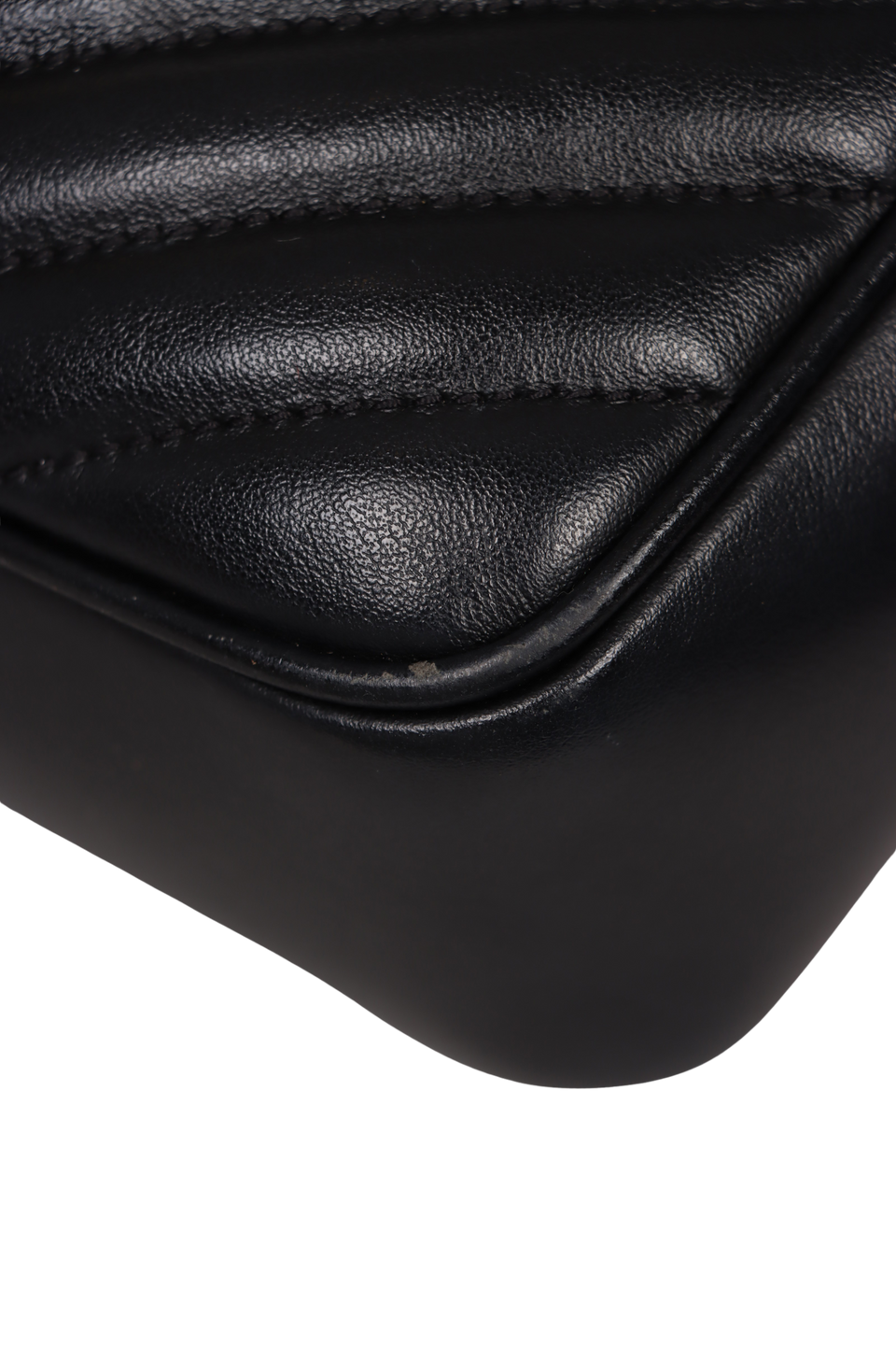 Descrição do Material: Couro calfskin preto com acabamento matelassê chevron