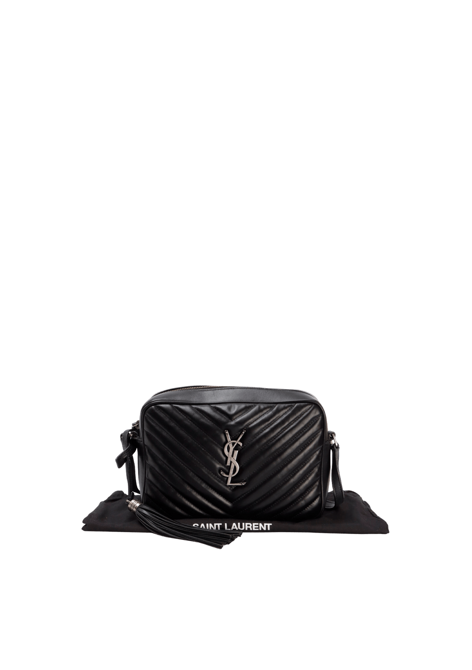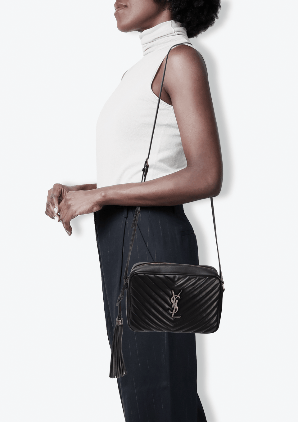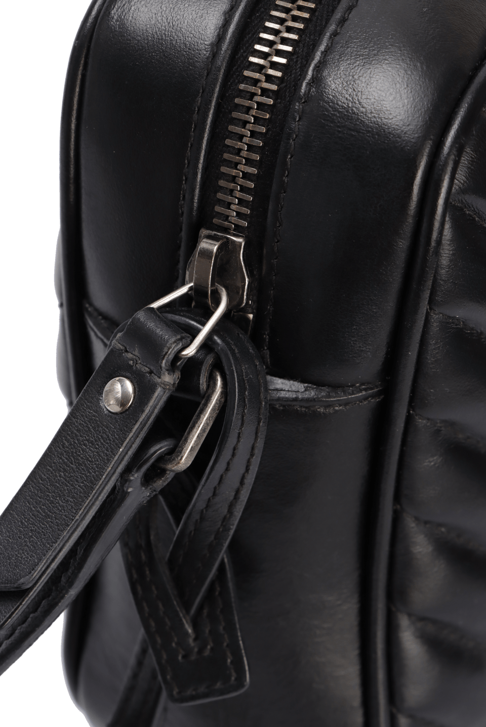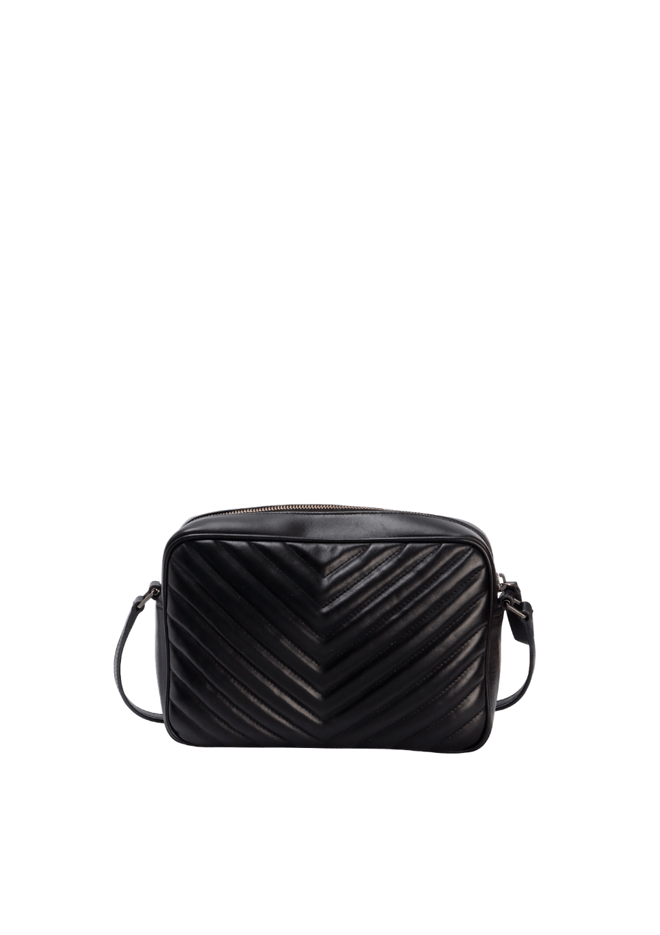 Descrição do Material: Couro calfskin preto com acabamento matelassê chevron