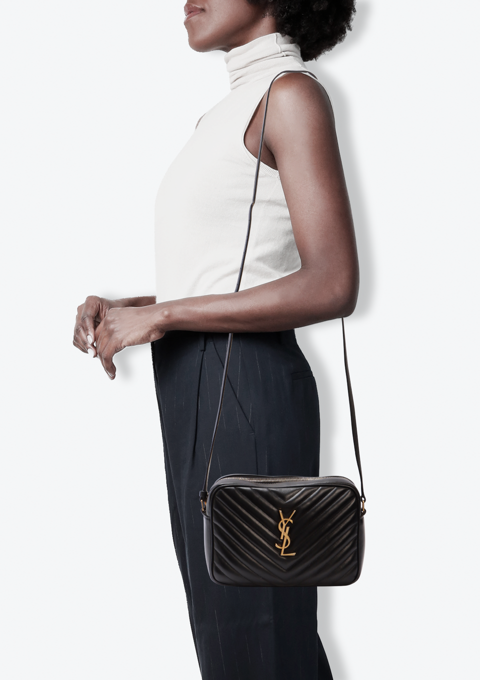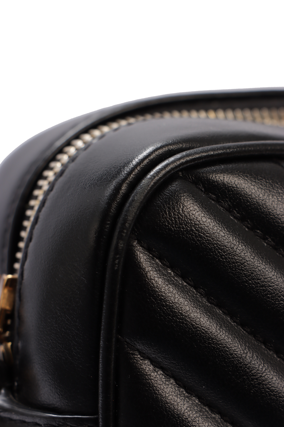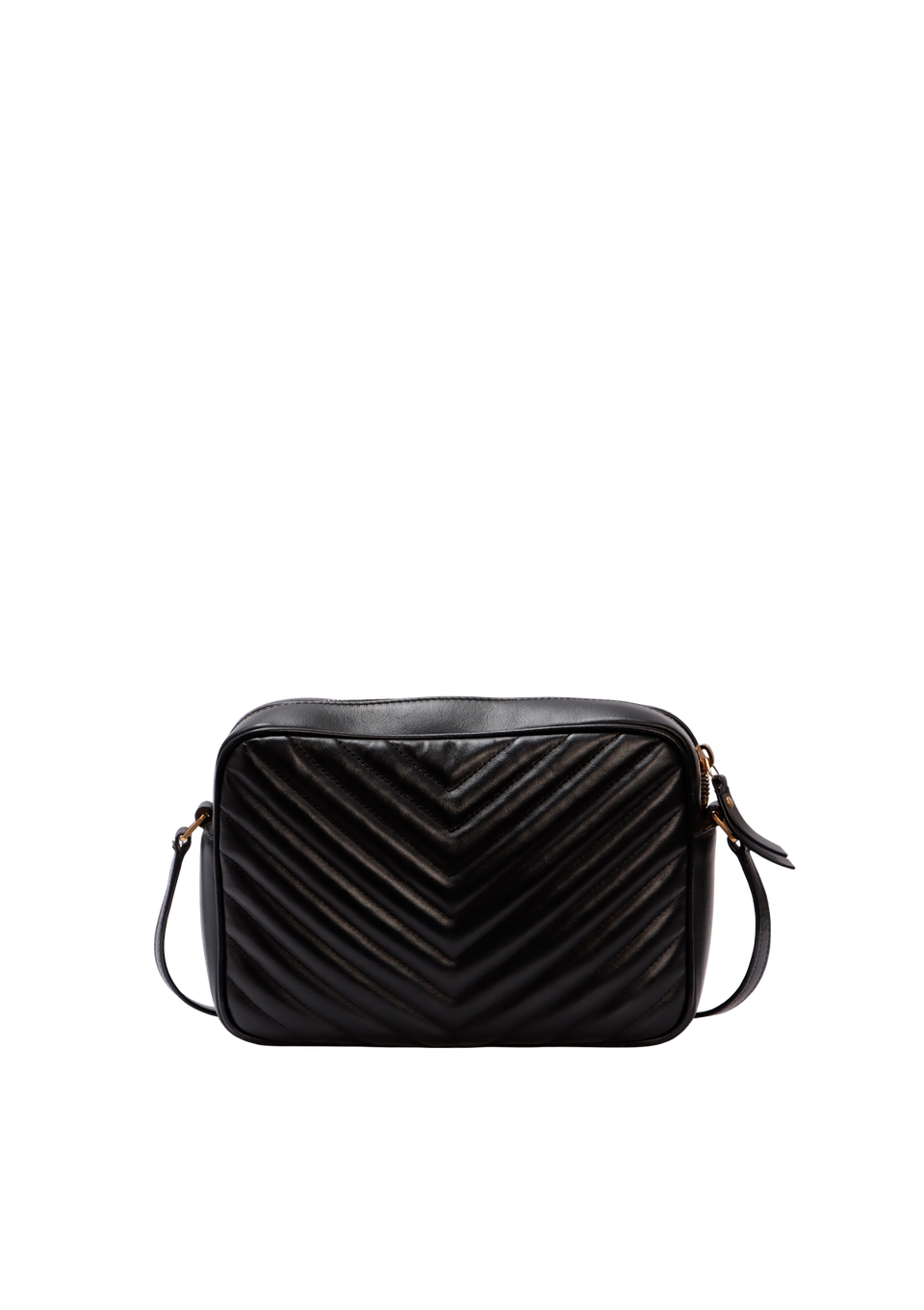 Descrição do Material: Couro calfskin preto com acabamento matelassê chevron