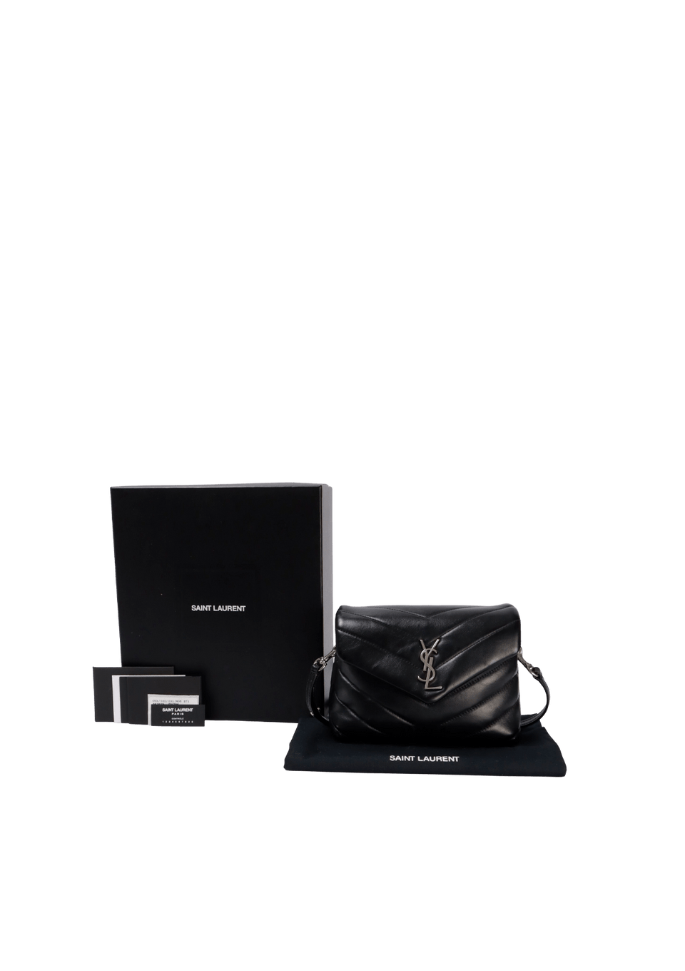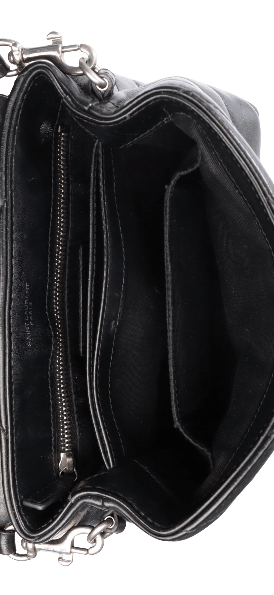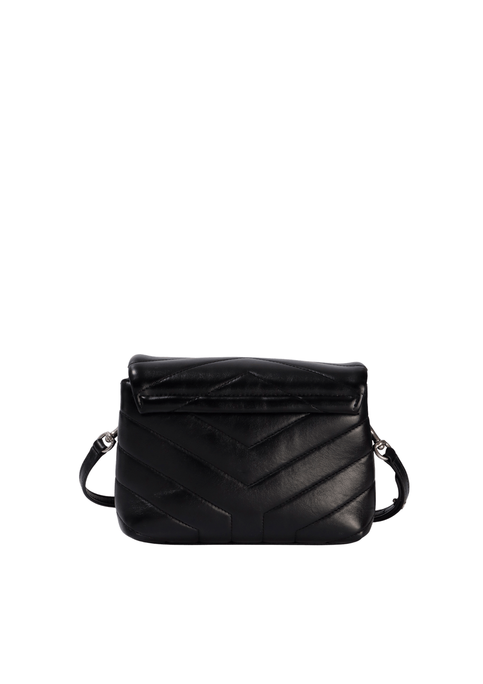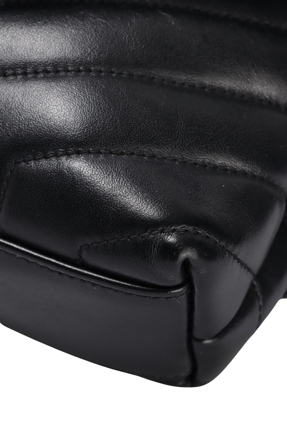 Descrição do Material: Couro calfskin preto com acabamento matelassê chevron Y