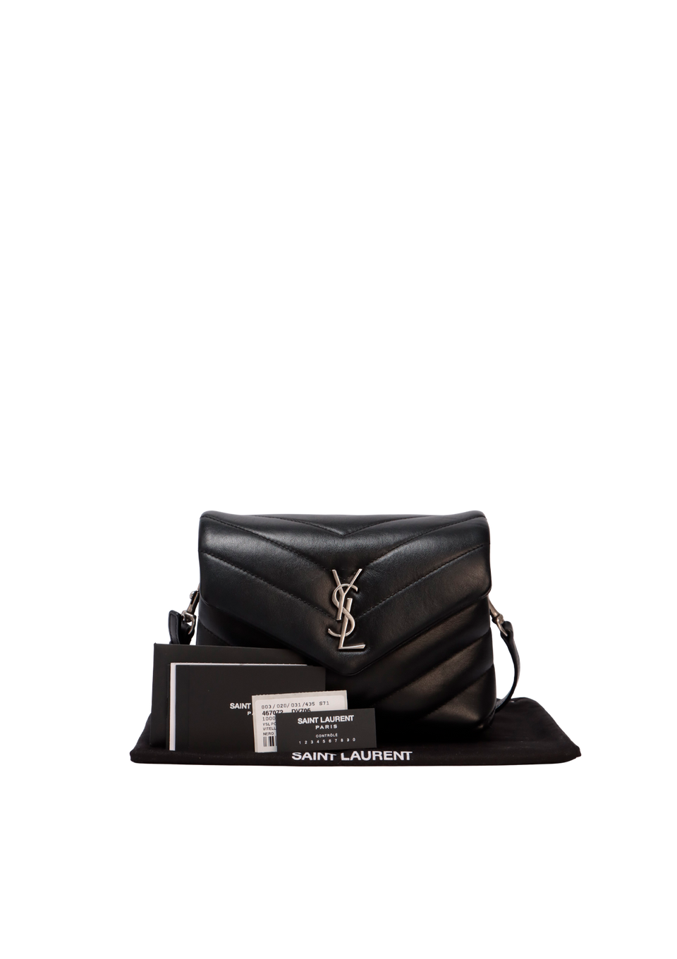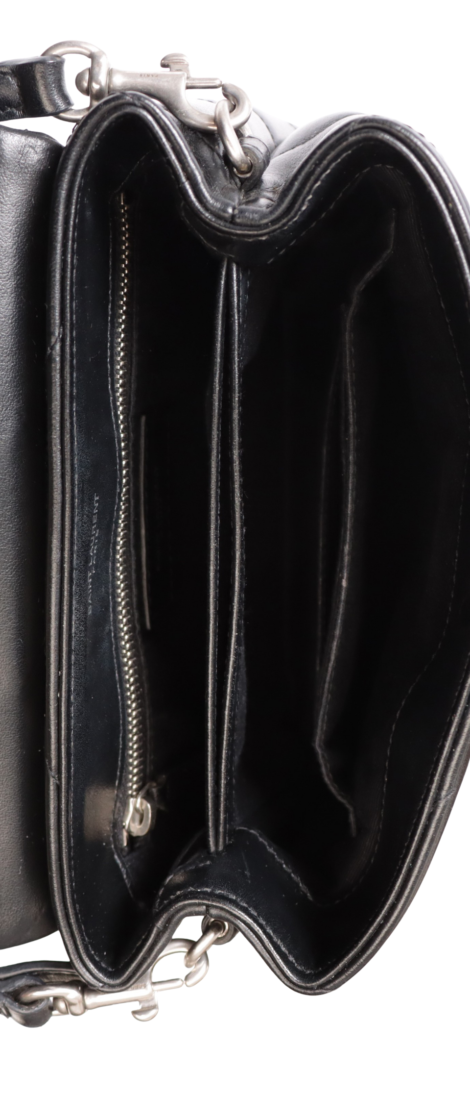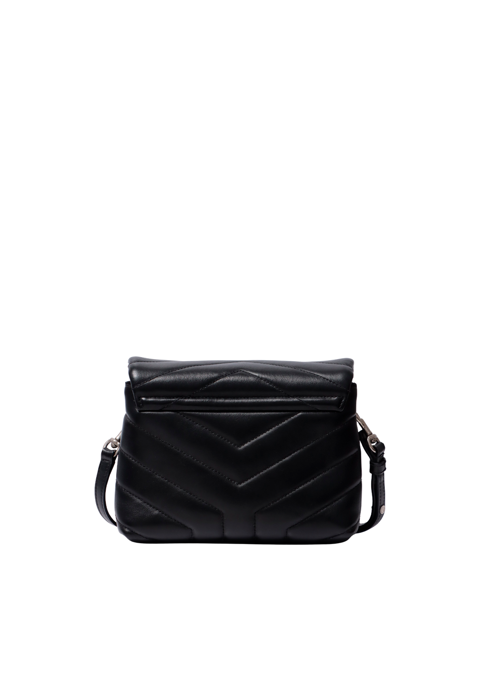 Descrição do Material: Couro calfskin preto com acabamento matelassê chevron Y