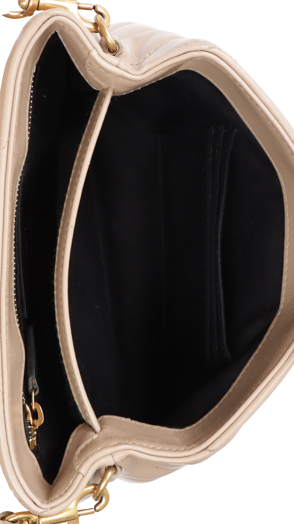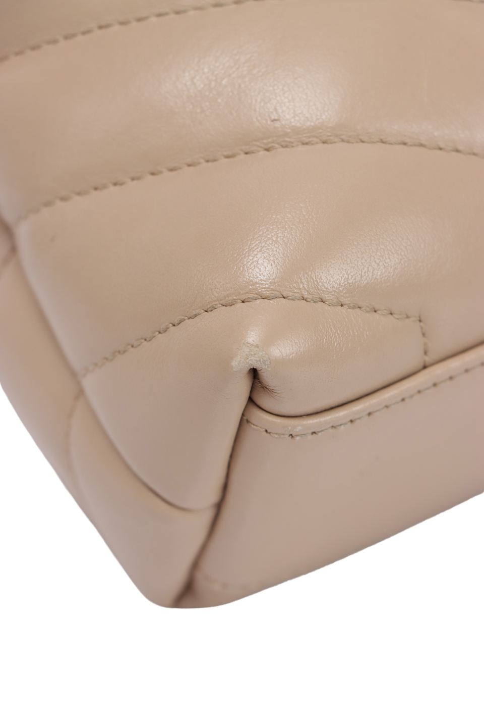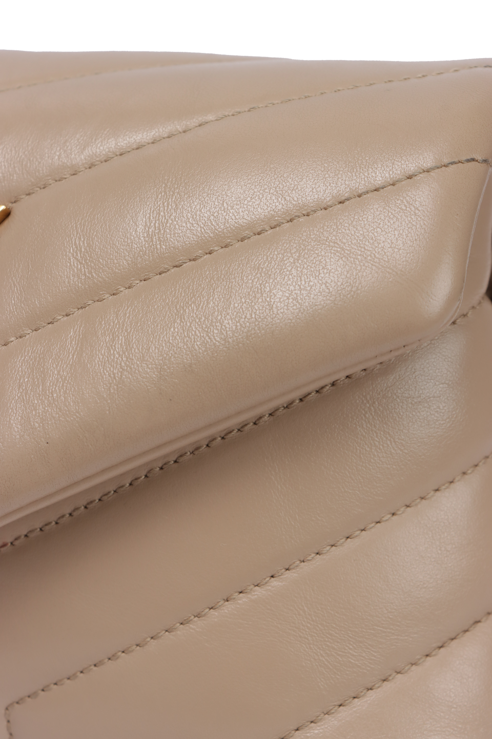 Descrição do Material: Couro calfskin bege com acabamento matelassê