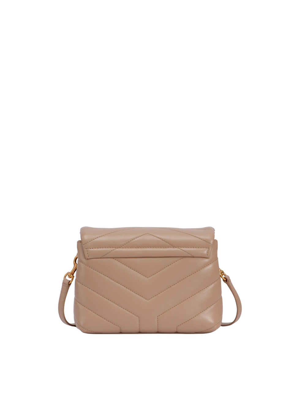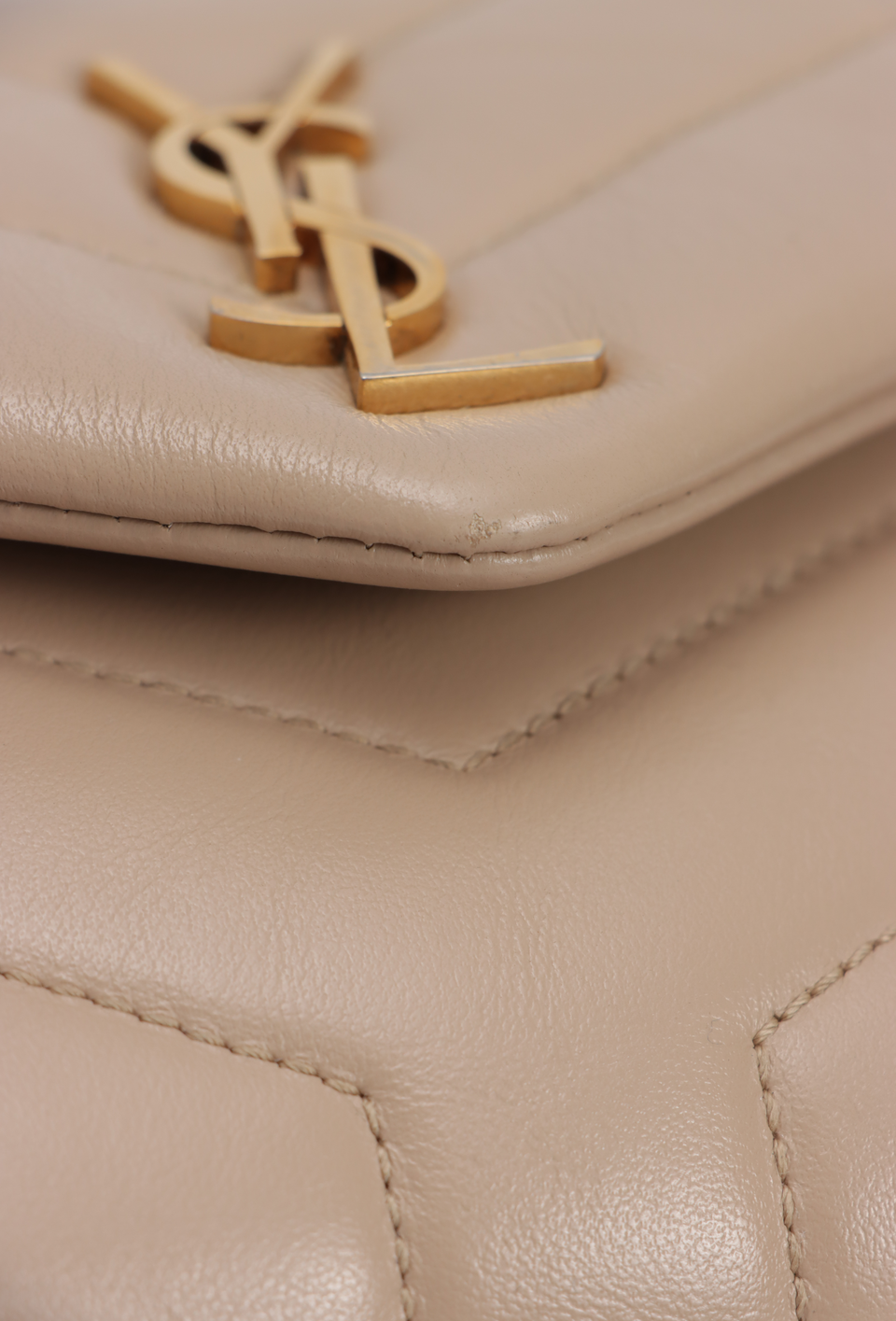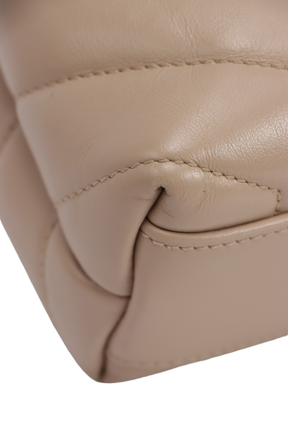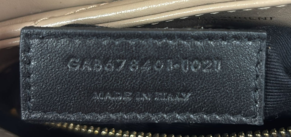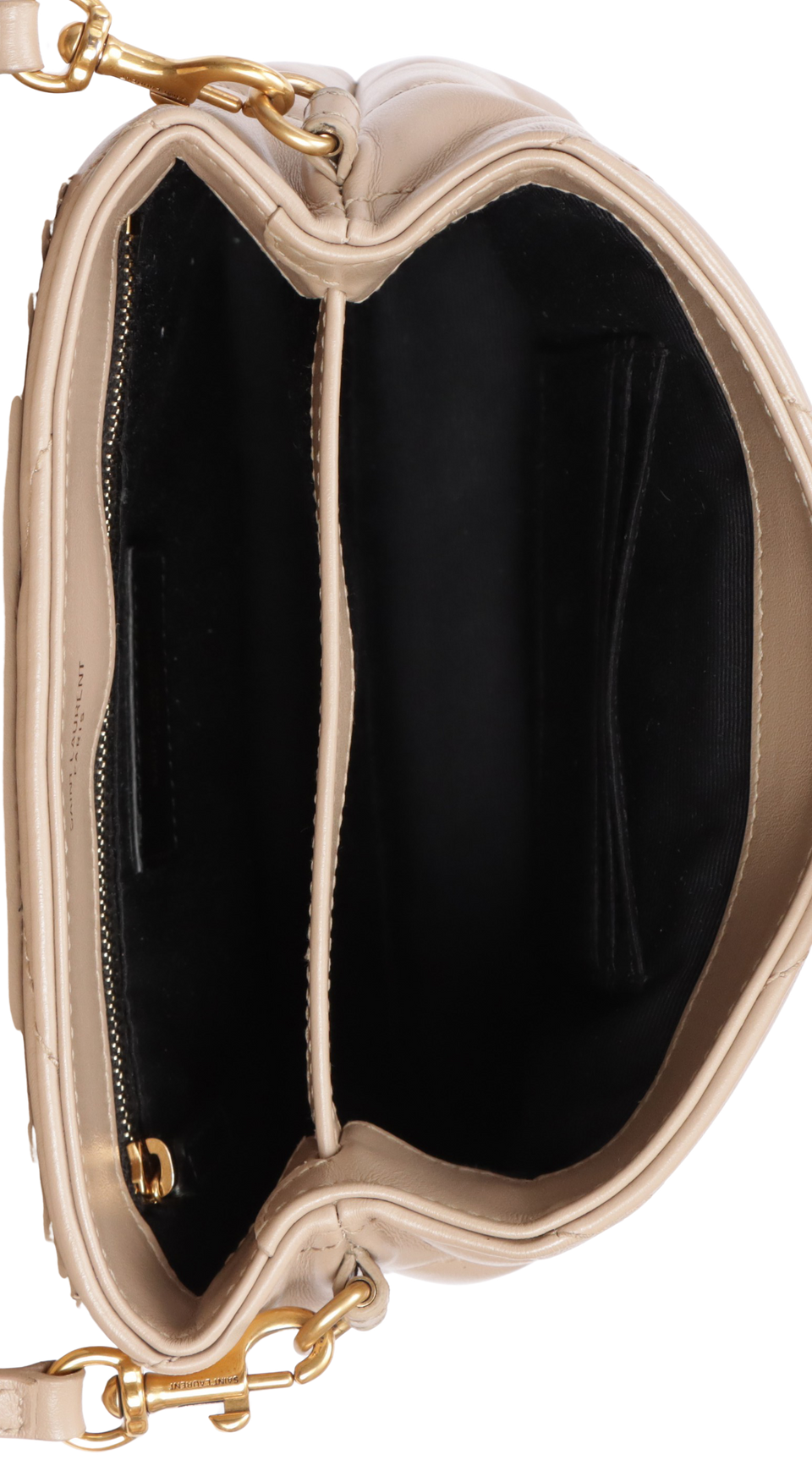 Descrição do Material: Couro calfskin bege com acabamento matelassê chevron Y